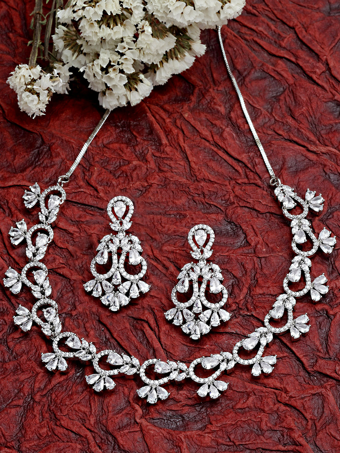 Silver Tone American Diamond Studded Necklace Set For Women. It is made with High-Quality AAA...
