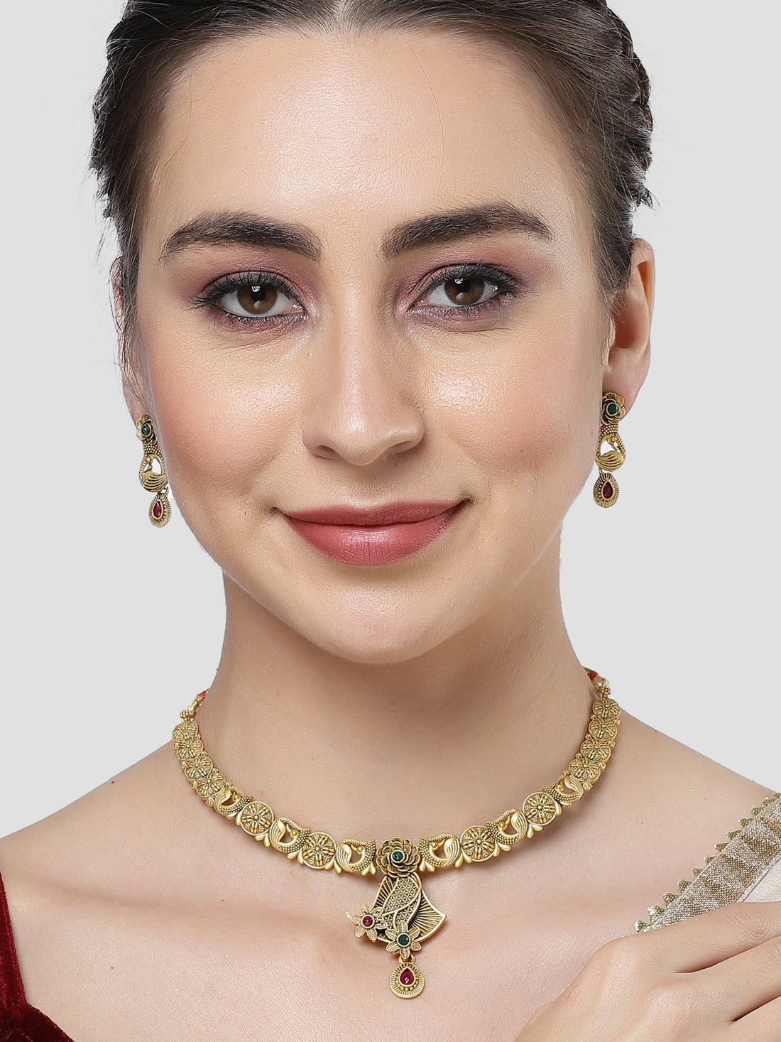 Karatcart Antique Gold Plated Floral Peacock Design Necklace Set for Women