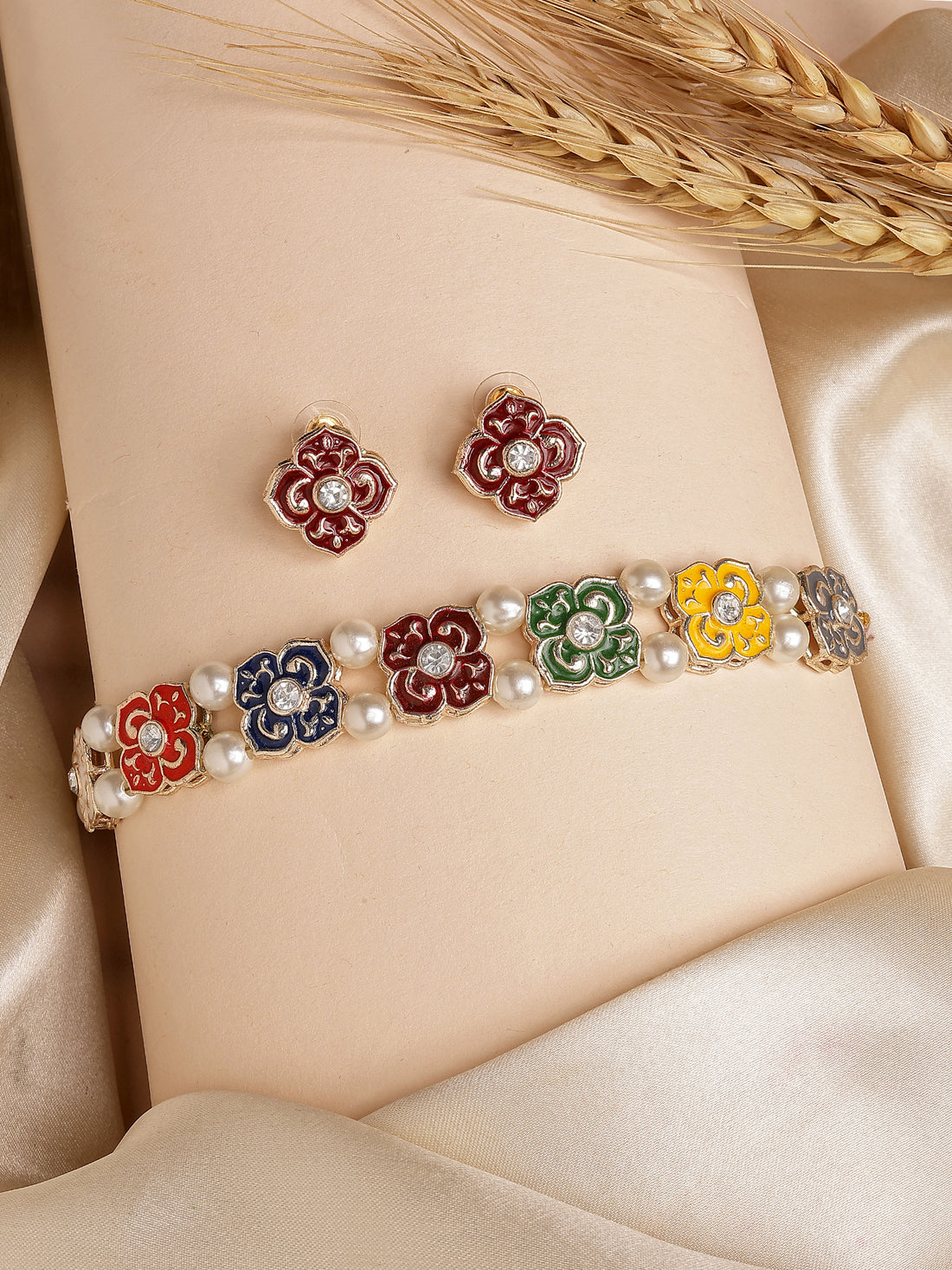 Karatcart Ethnic Multicolor Kundan Choker Necklace Set for Women