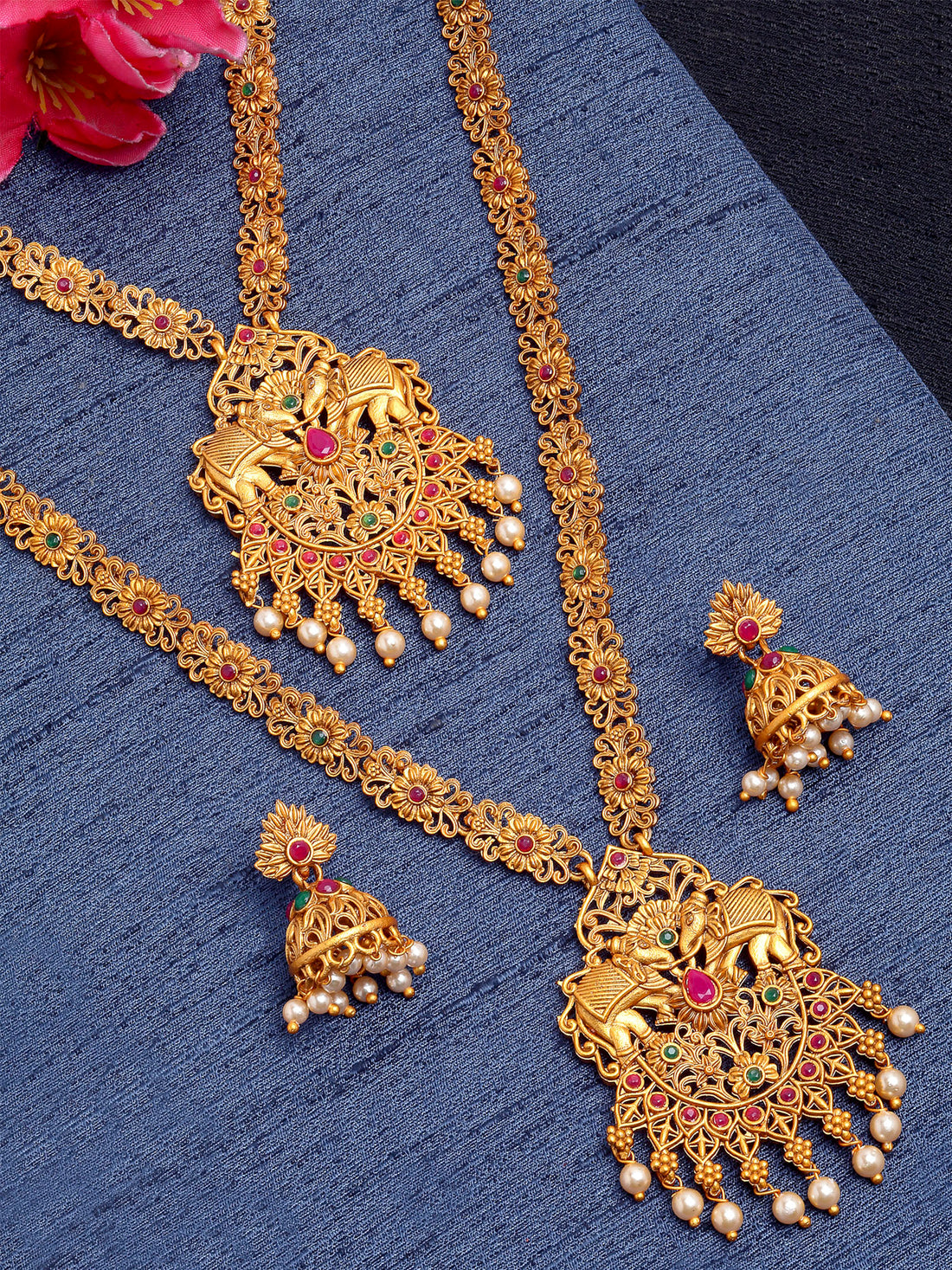 Karatcart Antique Gold Plated Floral Peacock Design Necklace Set for Women. Our products are designed...