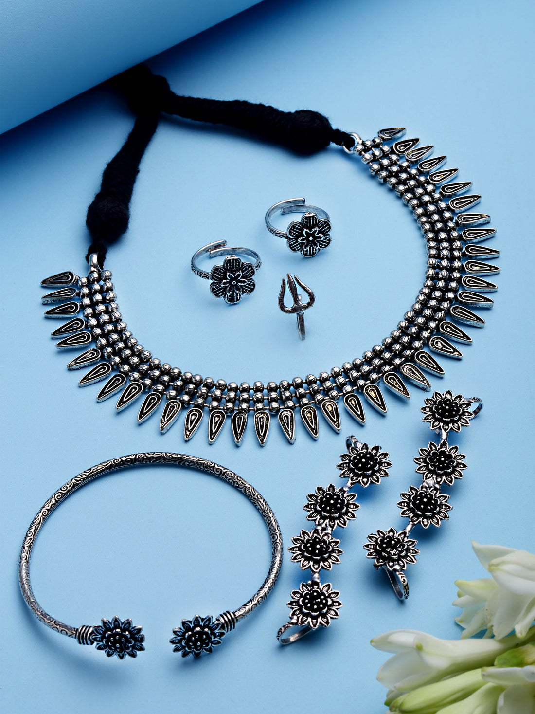 Karatcart Oxidised Silver Afghani Tribal Jewellery Set Combo for Womens