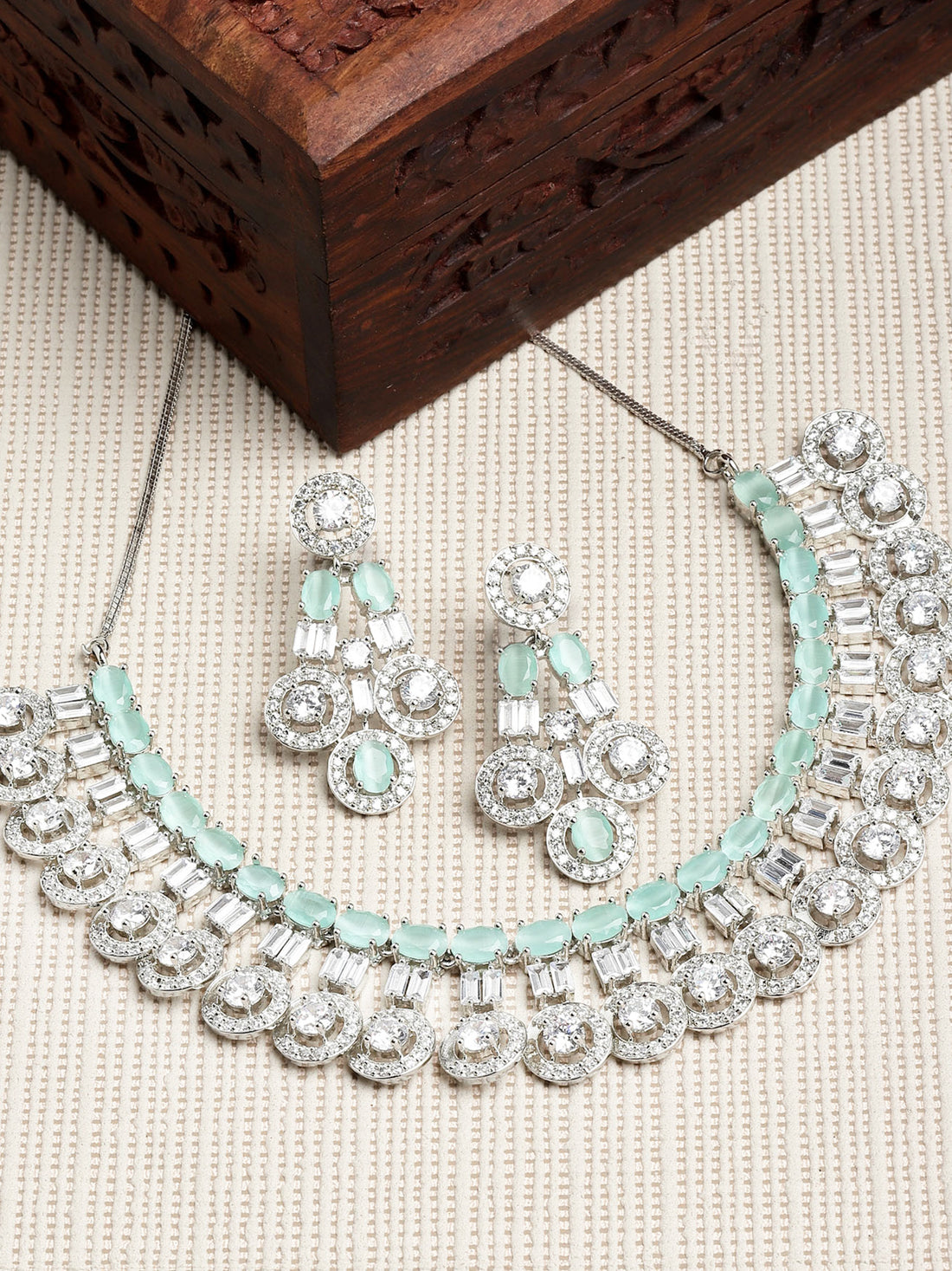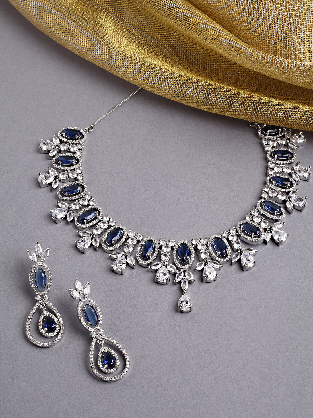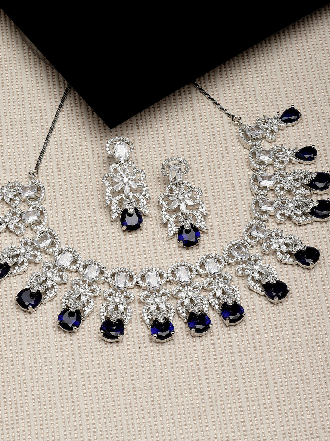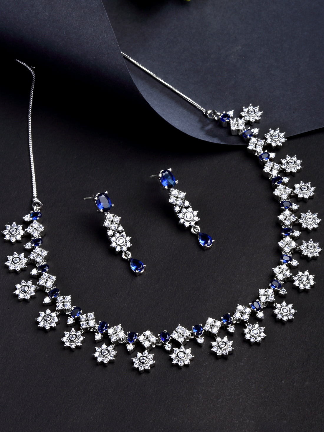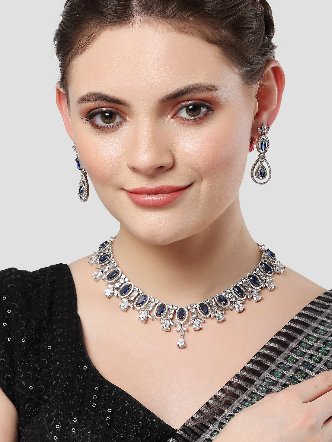 Karatcart Blue Cubic Zirconia Studded Silver Tone Necklace Set