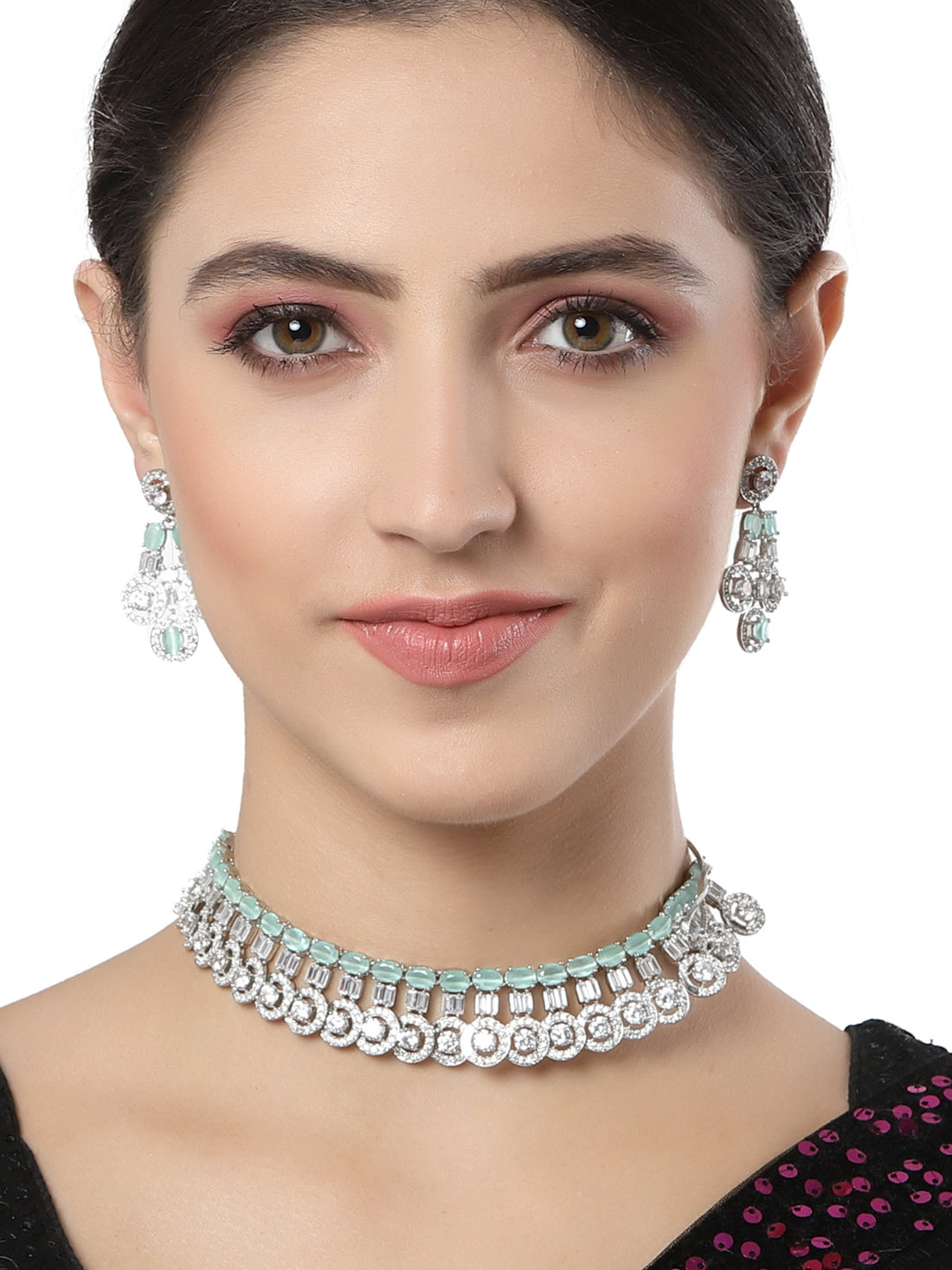 Karatcart Silver Tone Lime Green American Diamond Necklace Set