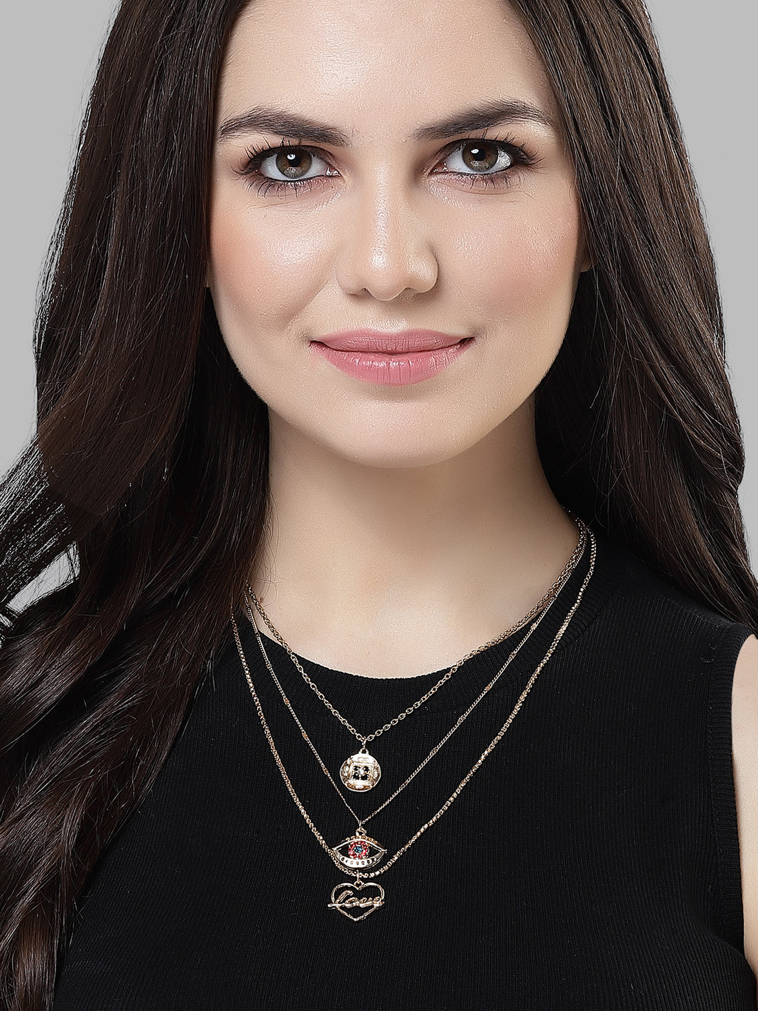 Bohey by KARATCART Gold Plated Eye and Love Multicharm Multilayered Chain Necklace for Women