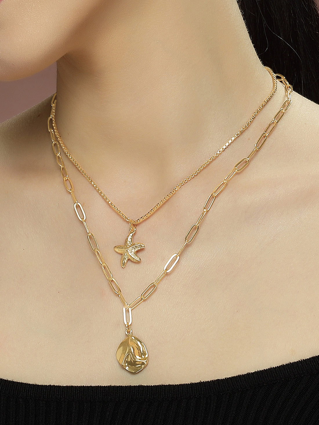 Bohey by KARATCART Gold Plated Star Fish Multicharm Multilayered Chain Necklace for Women
