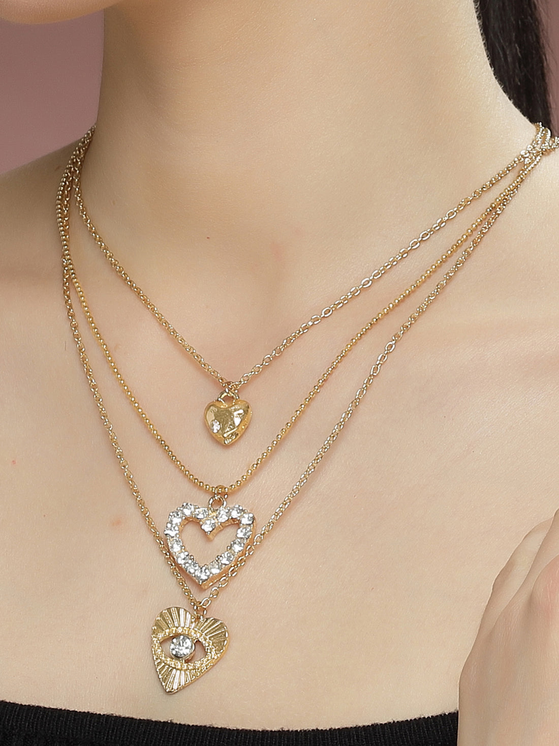 Bohey by KARATCART Gold Plated Crystal Heart Shape Multicharm Multilayered Chain Necklace for Women