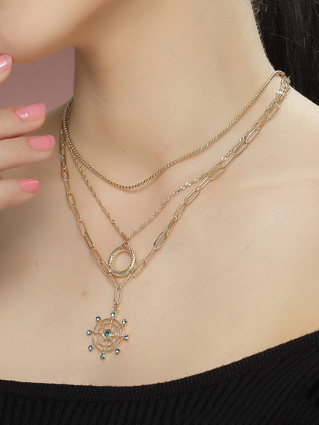 Bohey by KARATCART Gold Plated Crystal Eye and Ship Handle Multicharm Multilayered Chain Necklace for Women