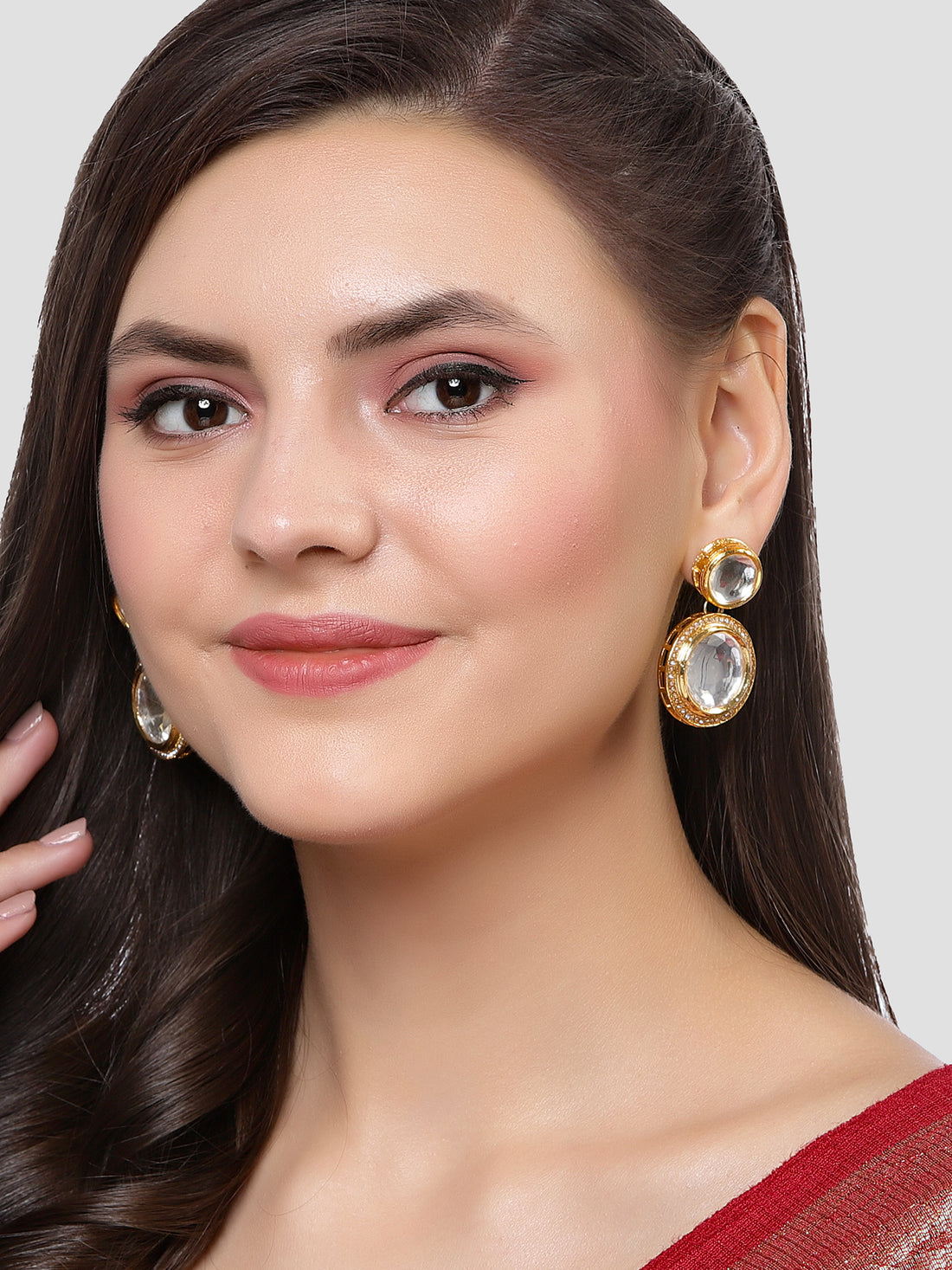 Karatcart Gold Plated Round Polki Kundan Drop Earrings for Women