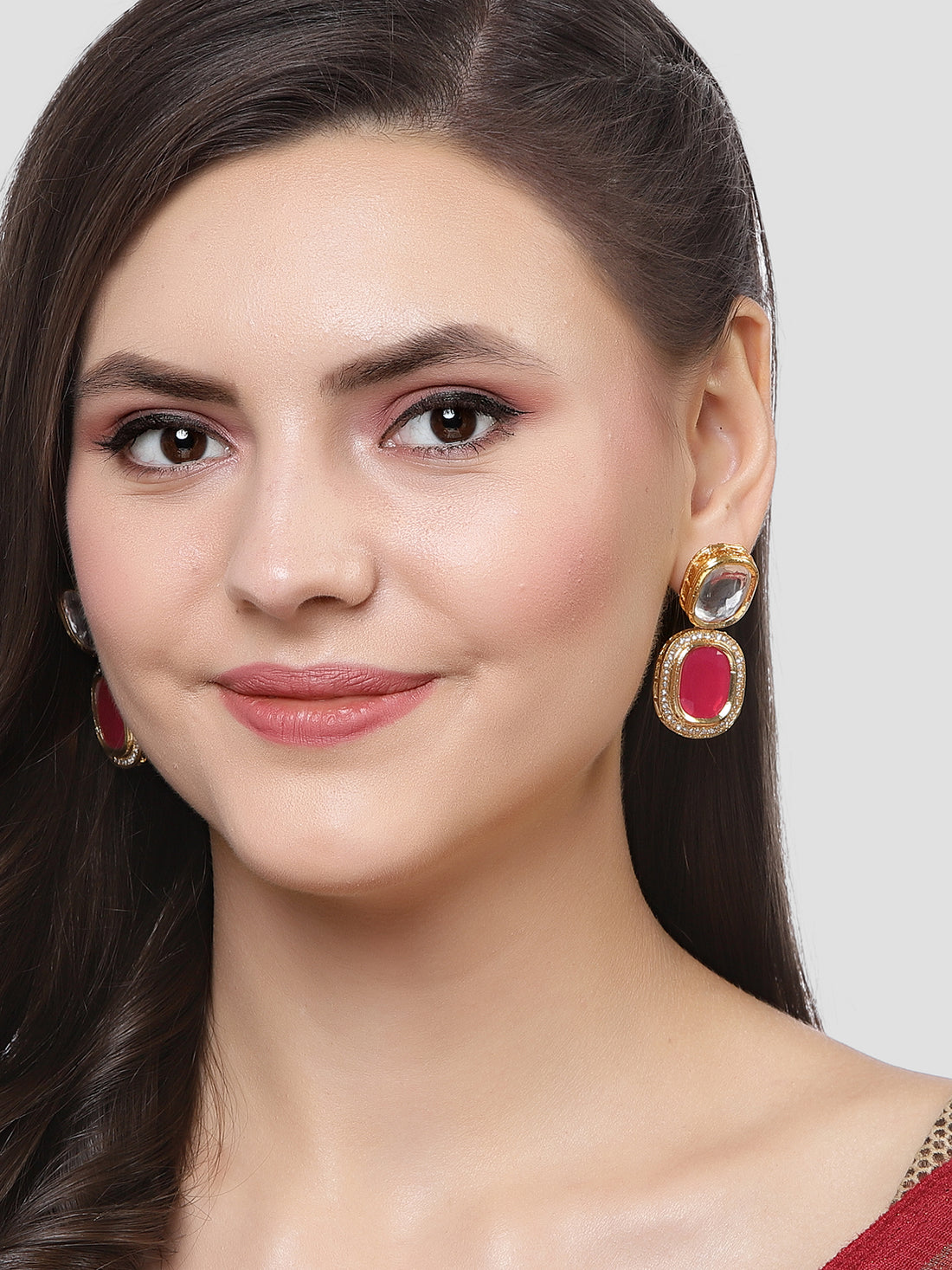 Karatcart Gold Plated Red Polki Kundan Drop Earrings for Women