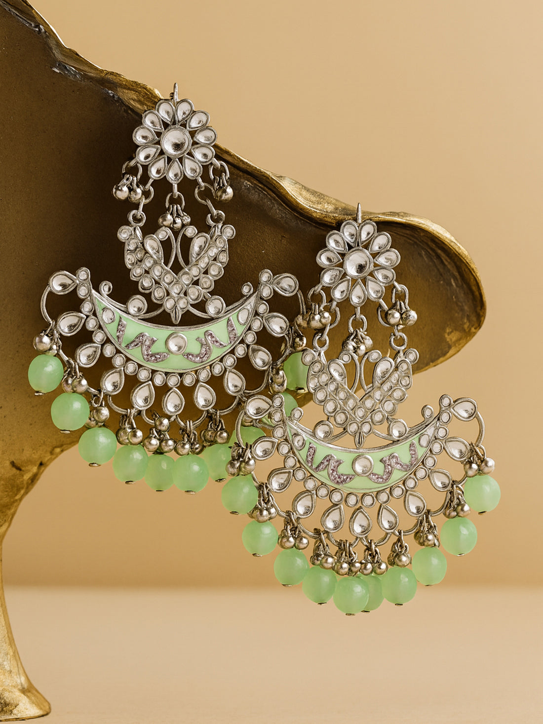 Karatcart Oxidised Silver Light Green Meena Kundan Dangler Earrings for Women