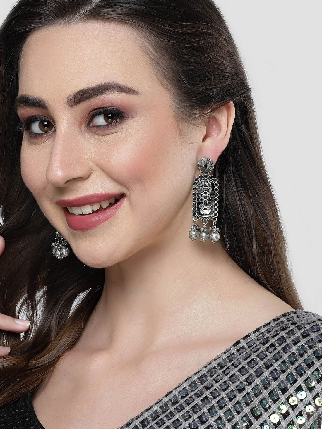 Karatcart Oxidised Silver Black Stone Studded Drop Earring for Women