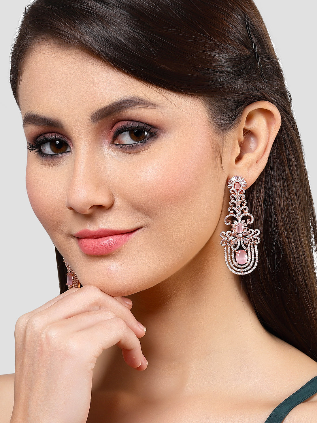Karatcart Rose Gold Plated Cubic Zirconia Studded Long Drop Earrings for Women