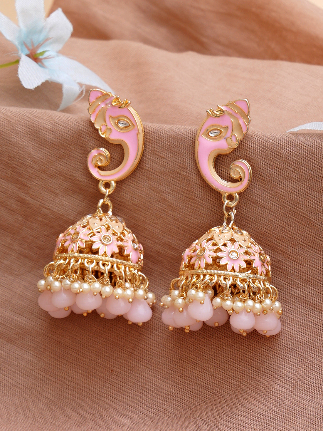 Karatcart Gold Plated Pink Lord Ganesha Jhumki Earrings for Women