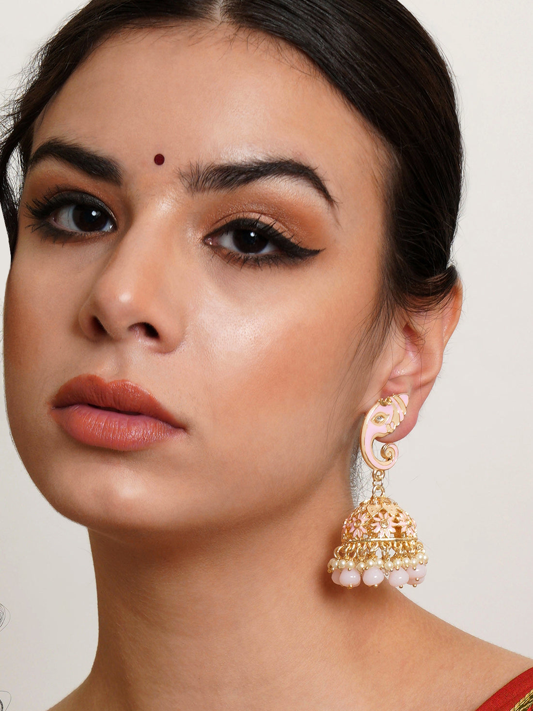 Karatcart Gold Plated Pink Lord Ganesha Jhumki Earrings for Women. Our products are designed with...