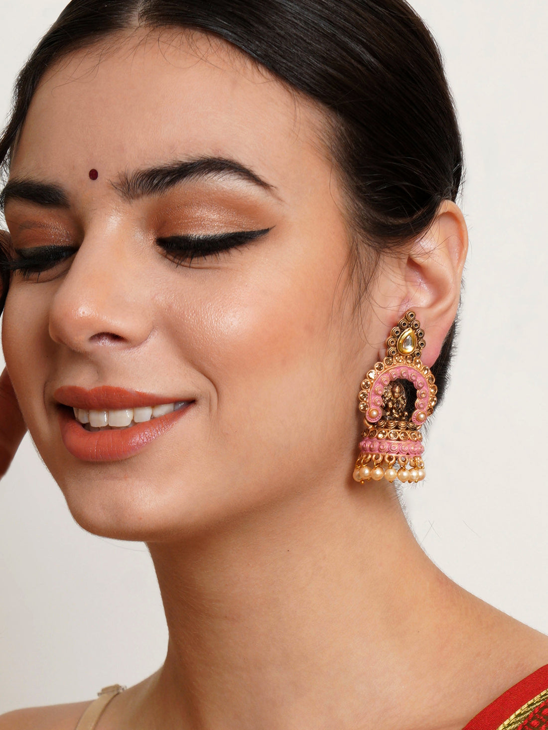Karatcart Gold Plated Pink Meena Mata Laxmi Jhumki Earrings for Women. Our products are designed...