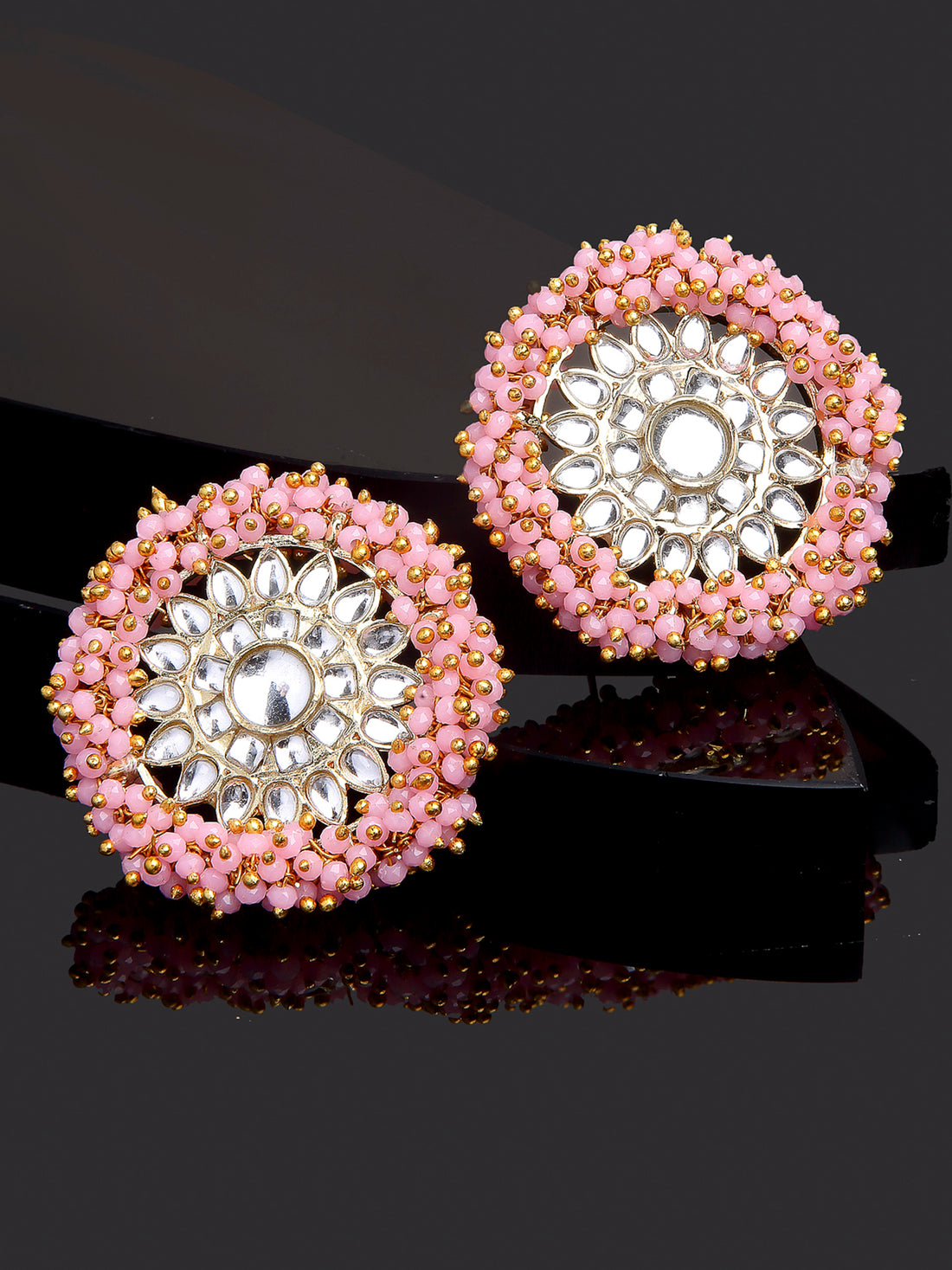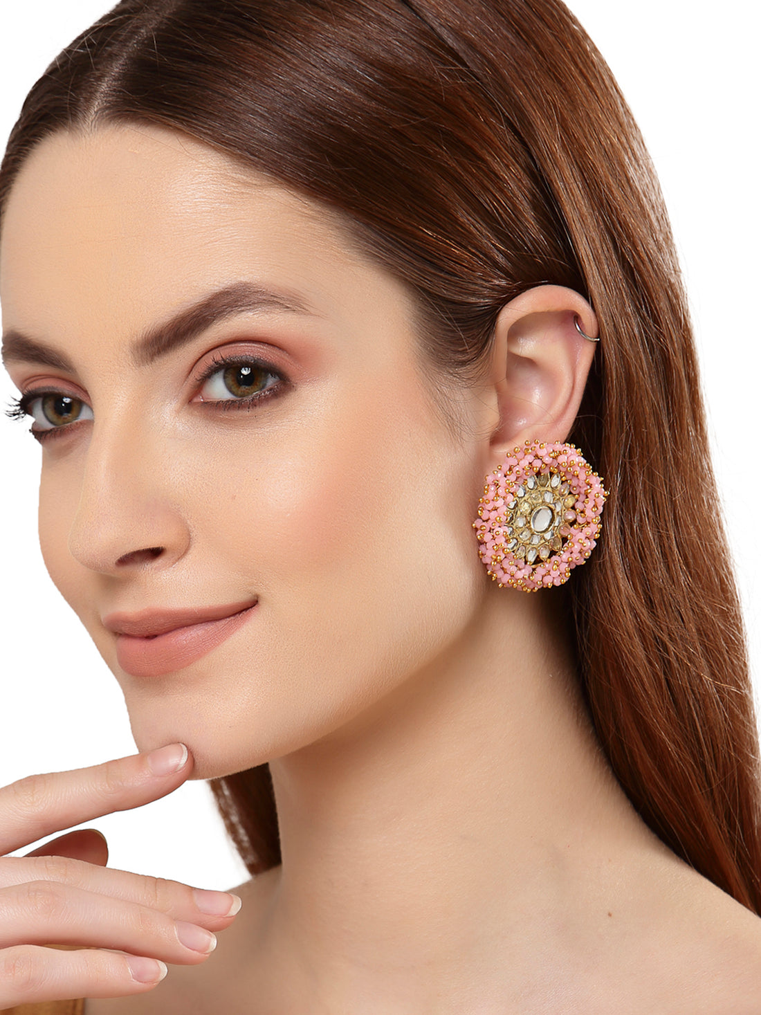Traditional Pink Crystal Studded Gold Plated Kundan Stud Earrings