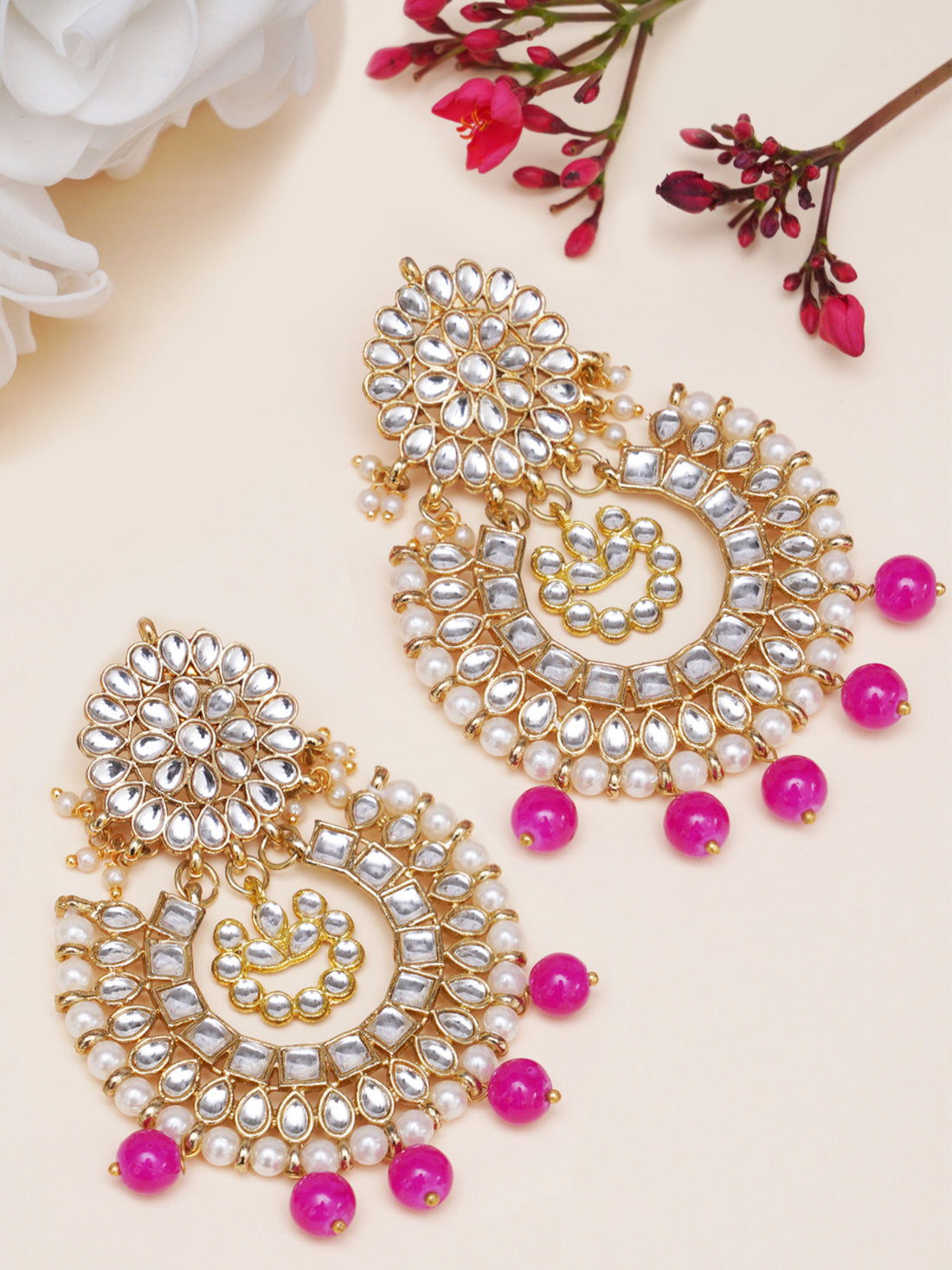 Karatcart Gold Plated Pink Drop Kundan Chandbali Earrings for Women. Made of High-Quality Metal Alloy as...