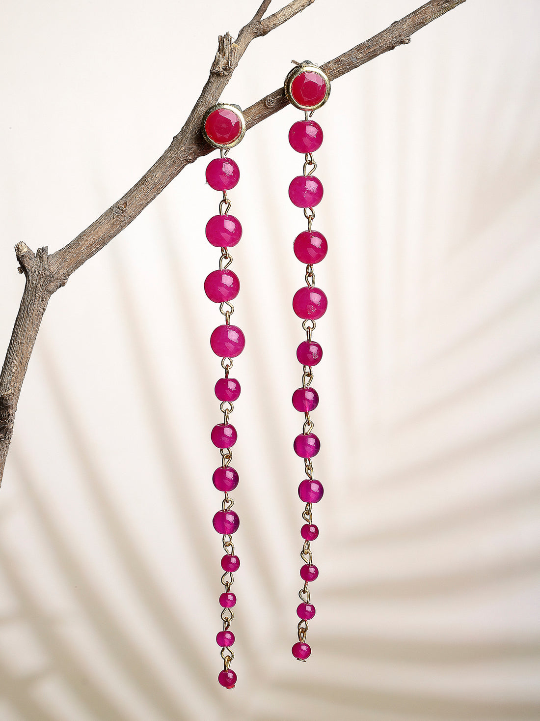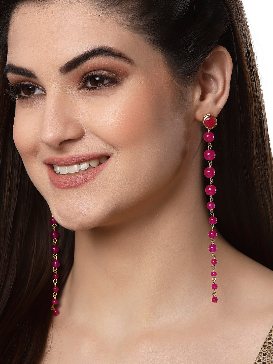 Traditional Pink Beads Long Drop Earrings. A delicate lightweight handcrafted pearl earrings. It is Embellished...