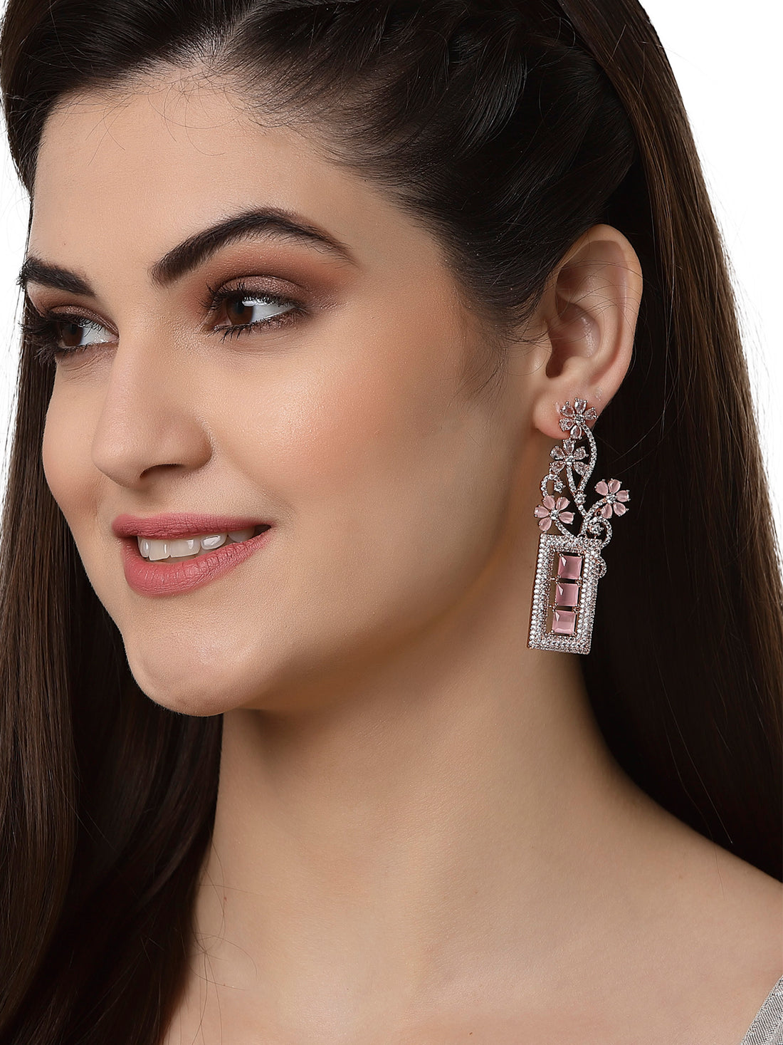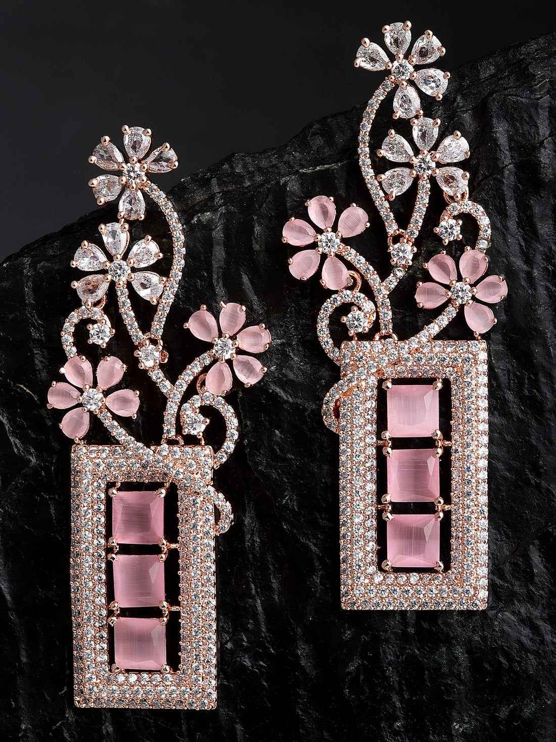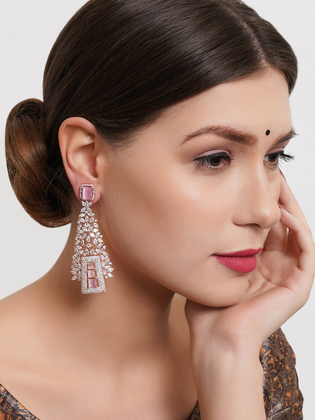 Pink & Rose Gold American Diamond Studded Contemporary Drop Earrings