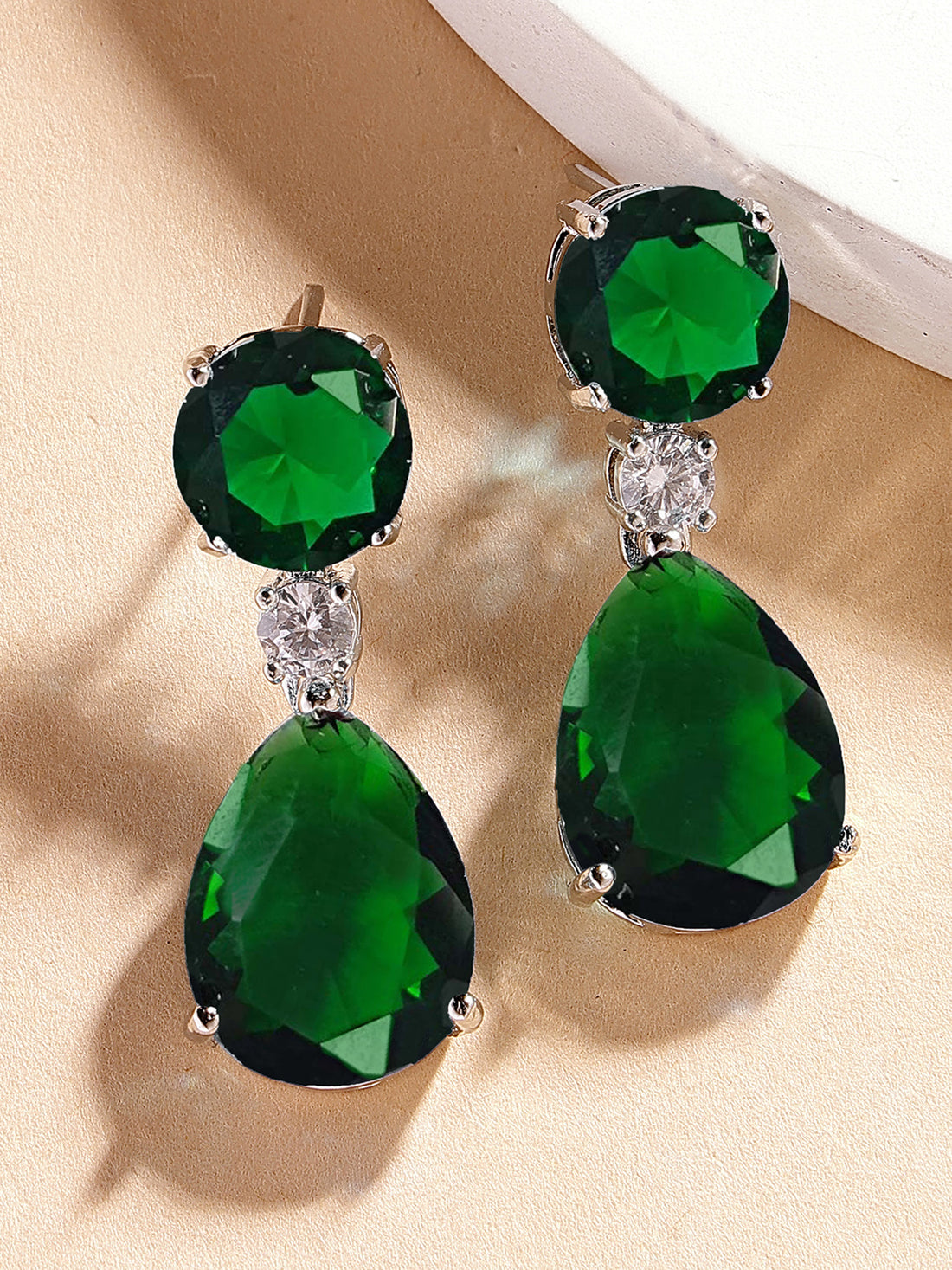 Karatcart Luxurious Green American Diamond Stone Drop Earrings in Silver Plating for Women