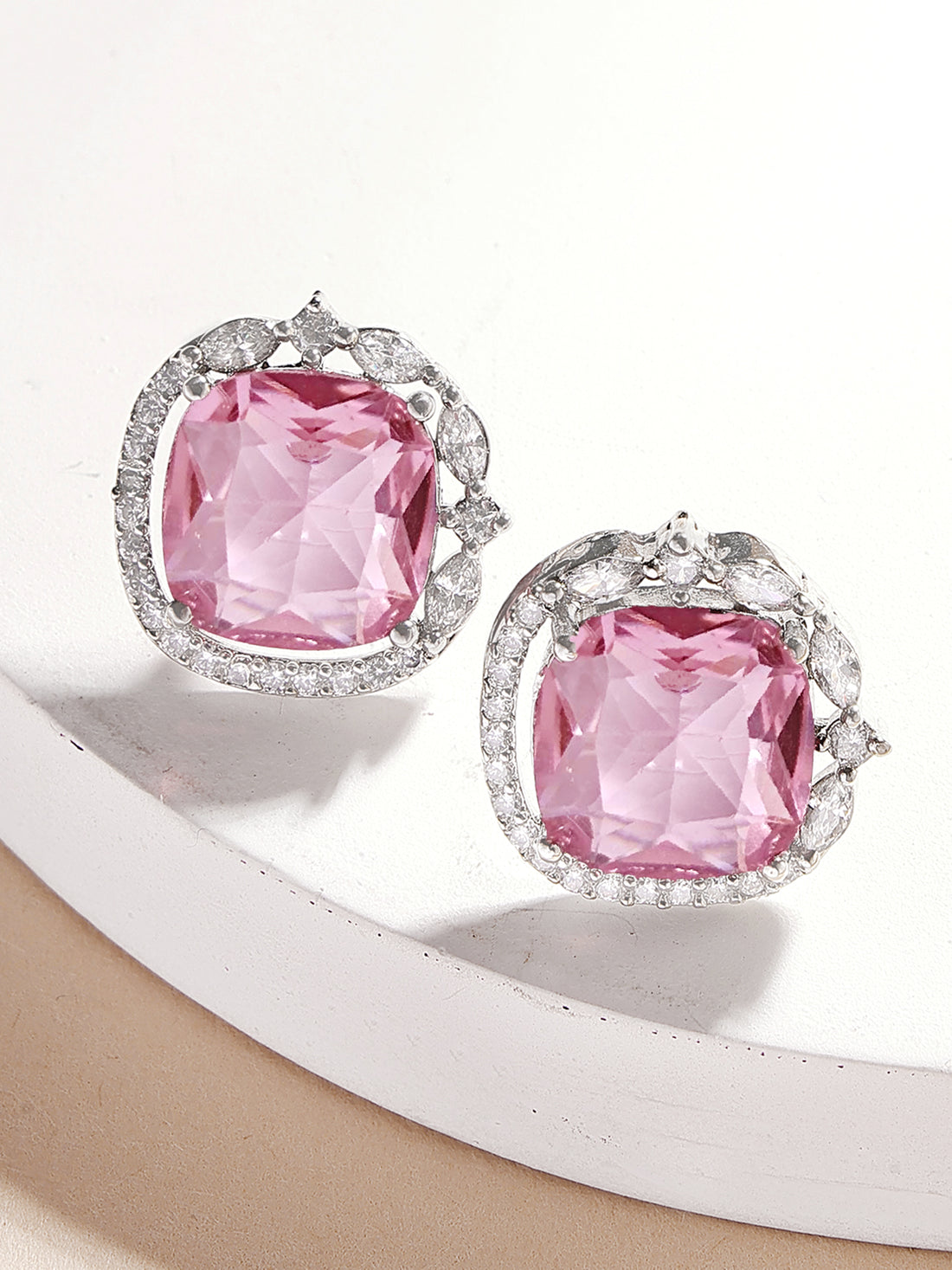 Karatcart Silver Tone Pink American Diamond Stud Earrings for Women