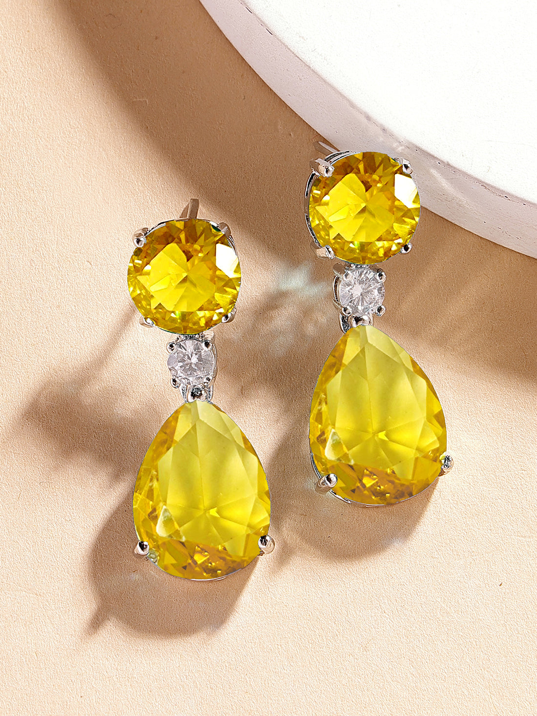 Karatcart Luxurious Yellow American Diamond Stone Drop Earrings for Women