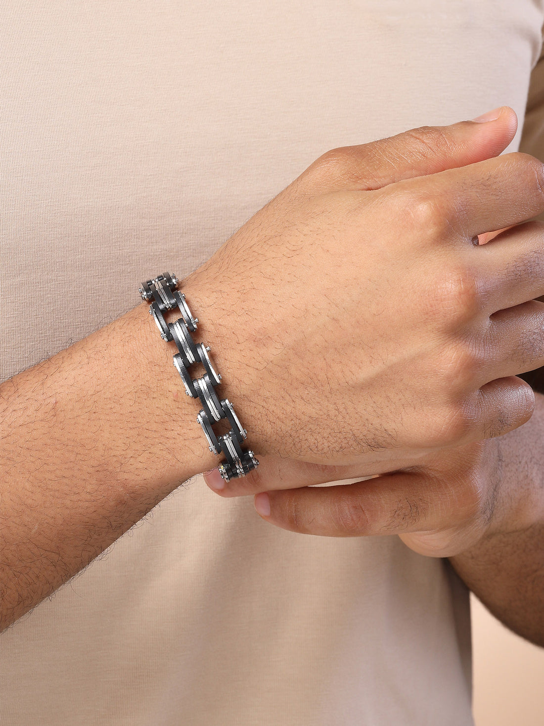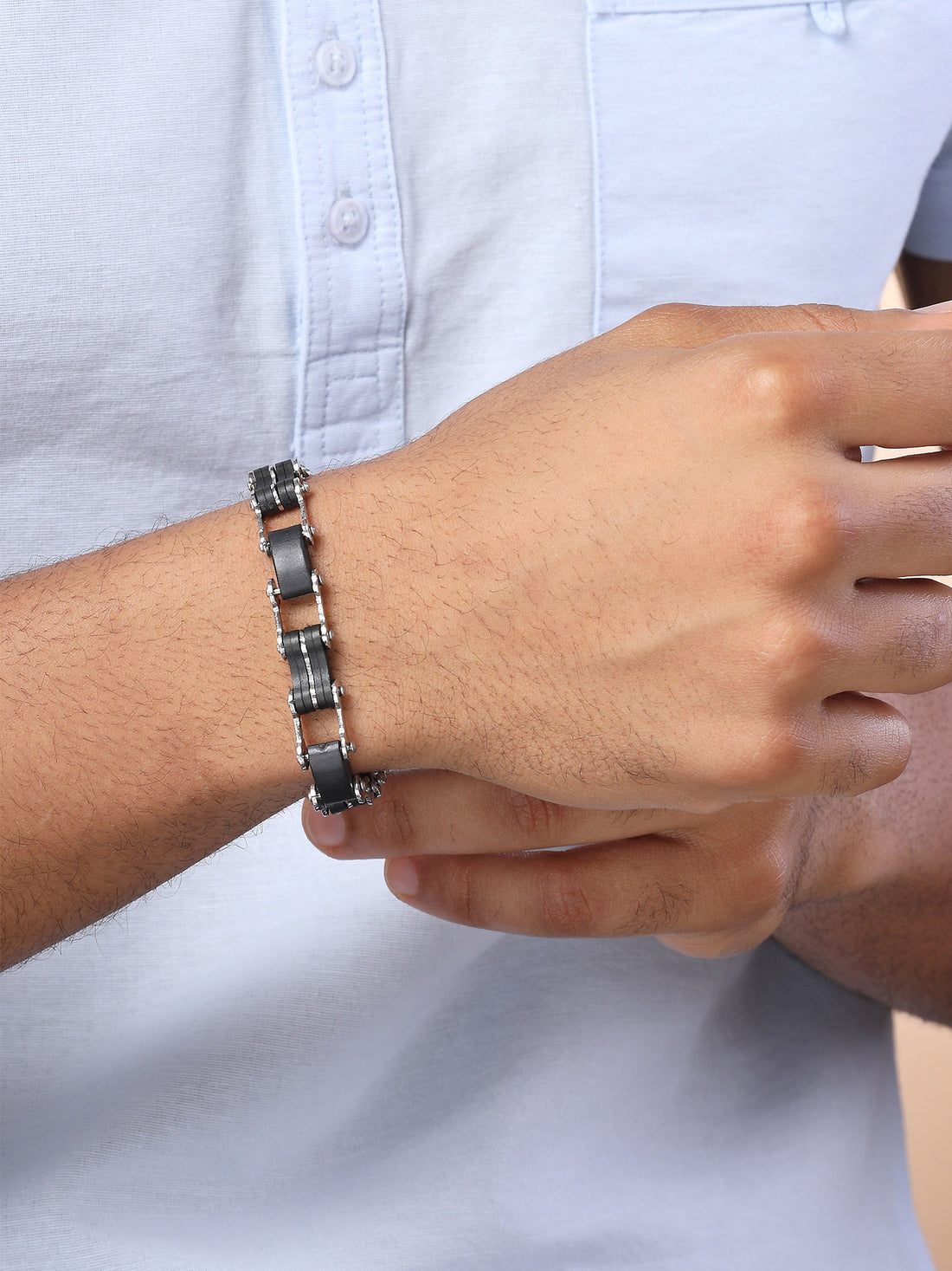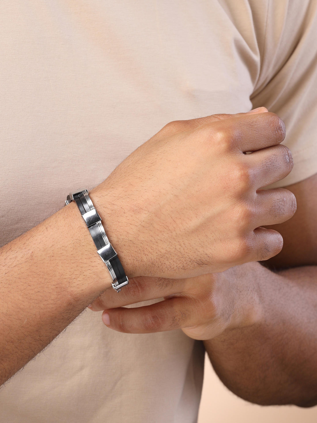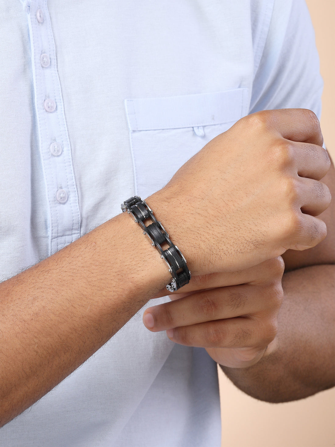 Bohey by KARATCART Black and Silver Link Bracelet for Men