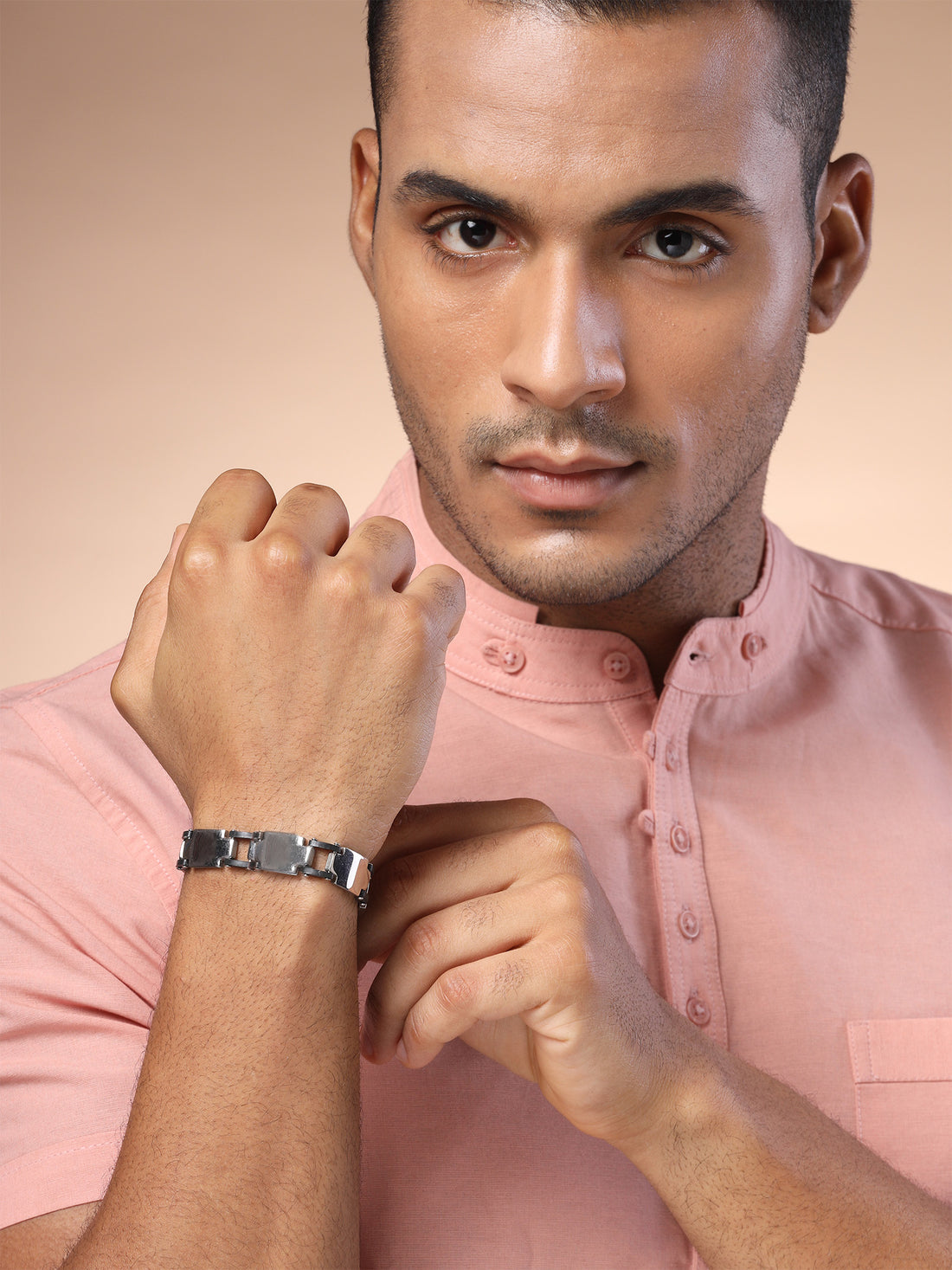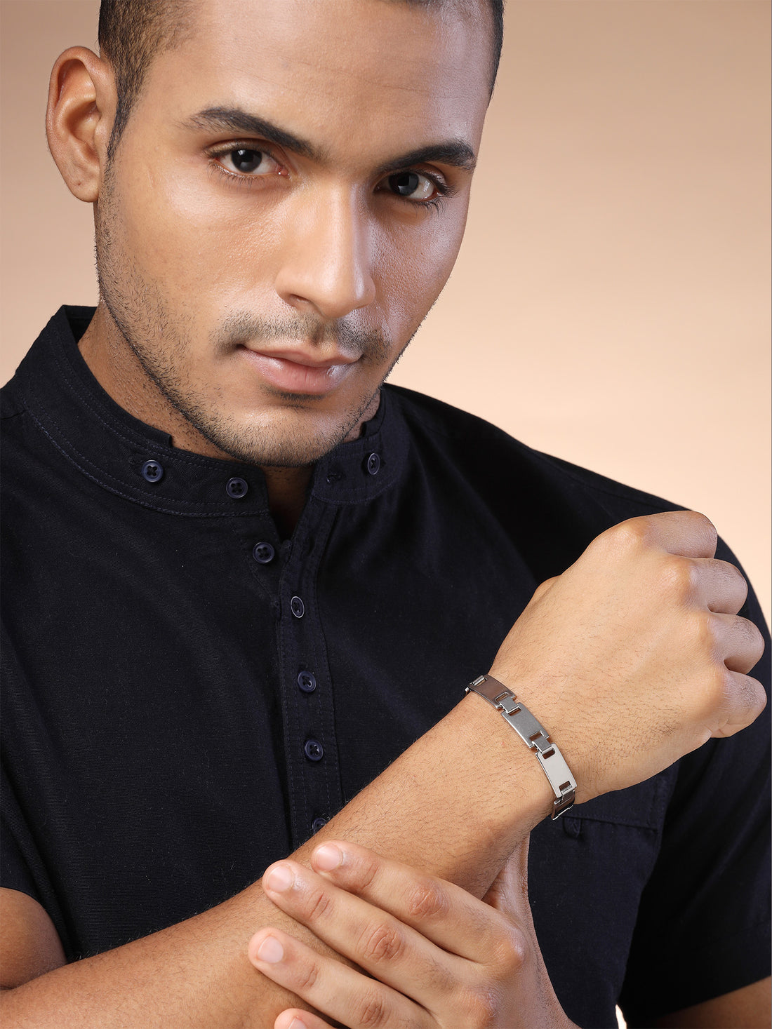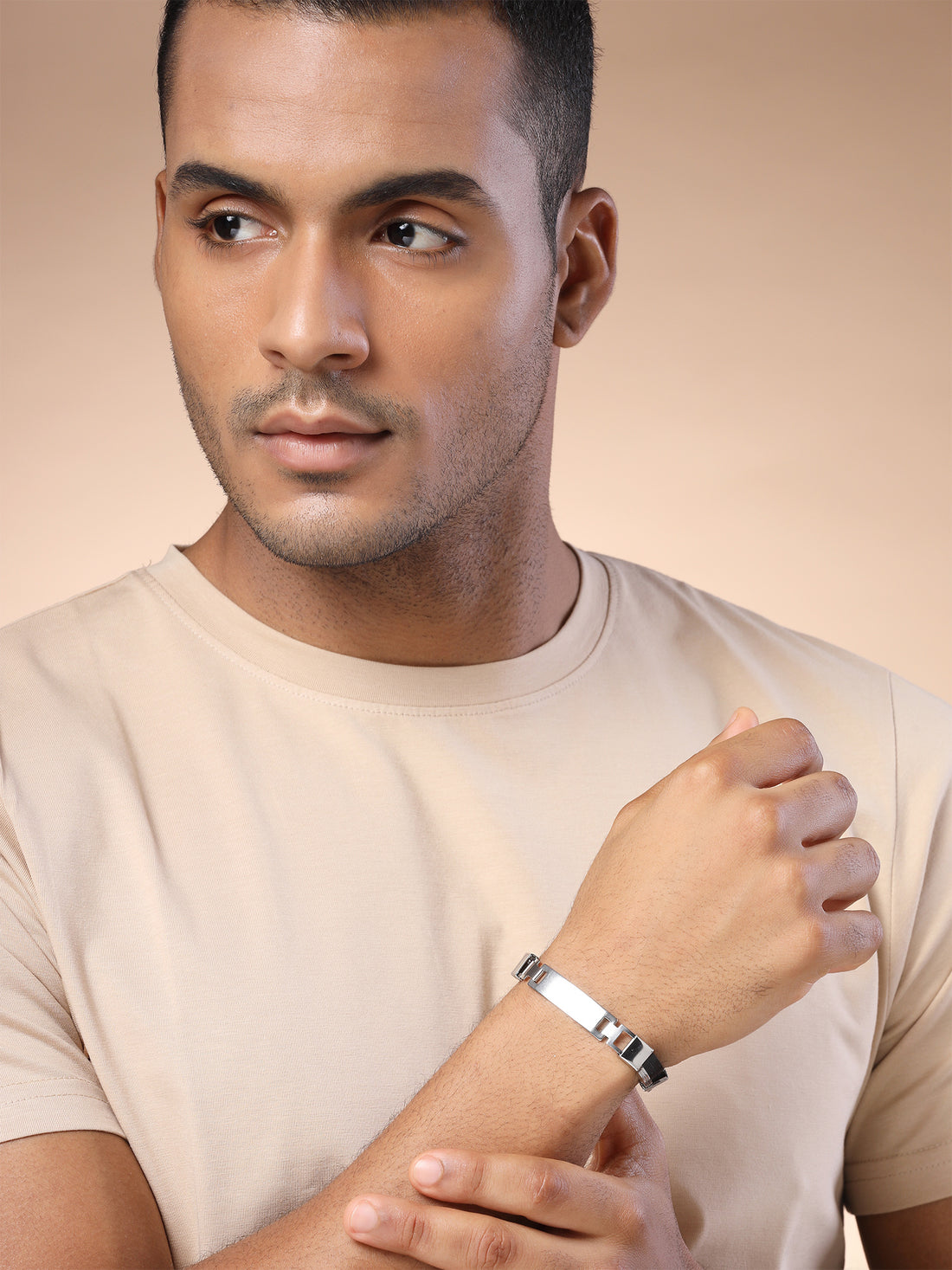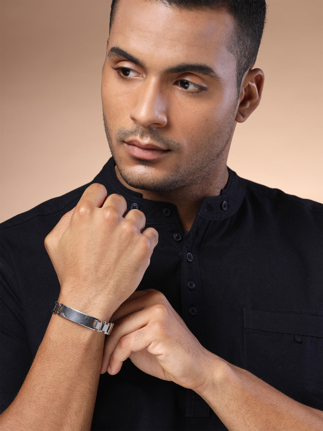 Bohey by KARATCART Black and Silver Link Bracelet for Men