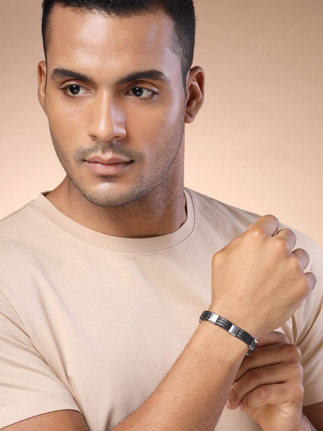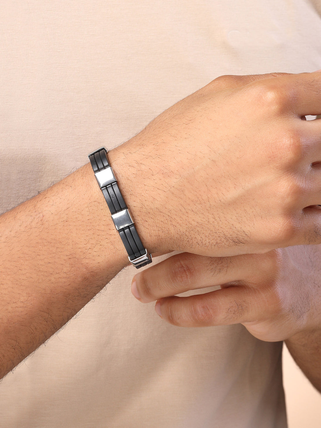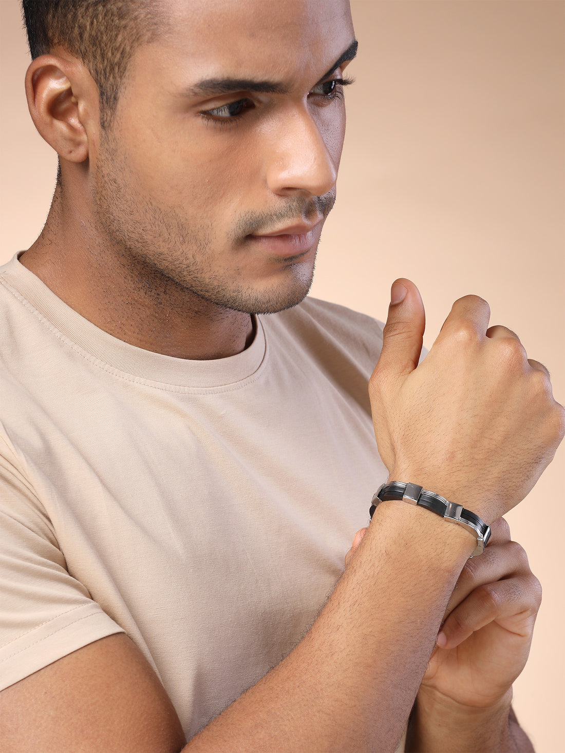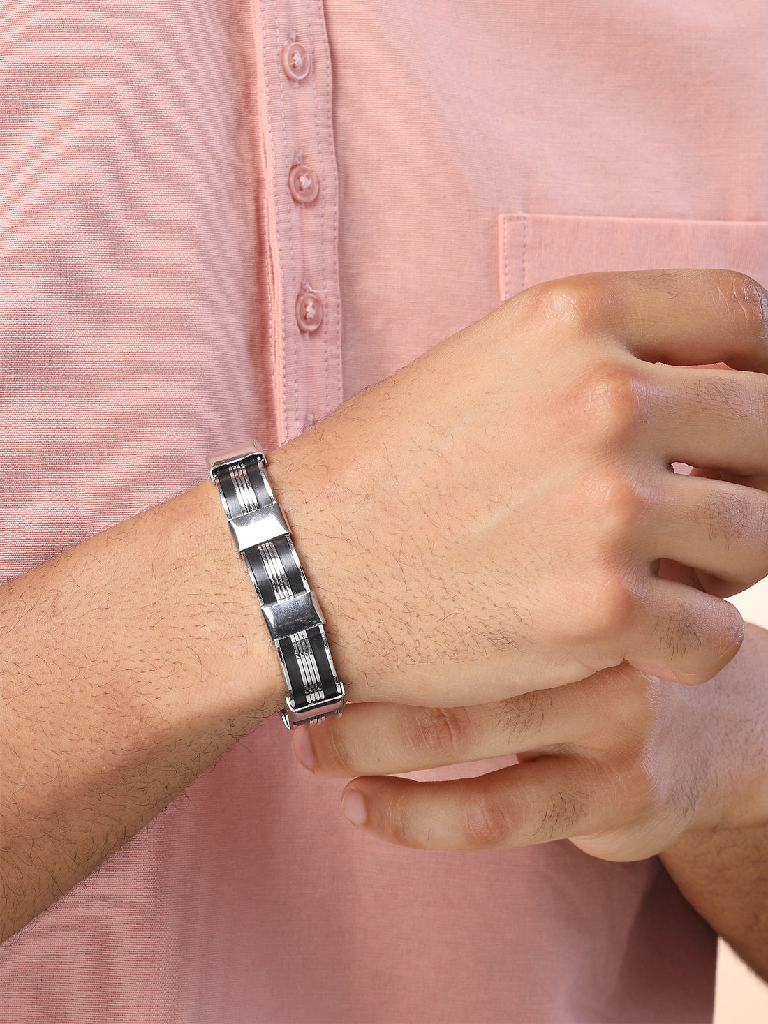 Bohey by KARATCART Men Silver and Black Link Bracelet
