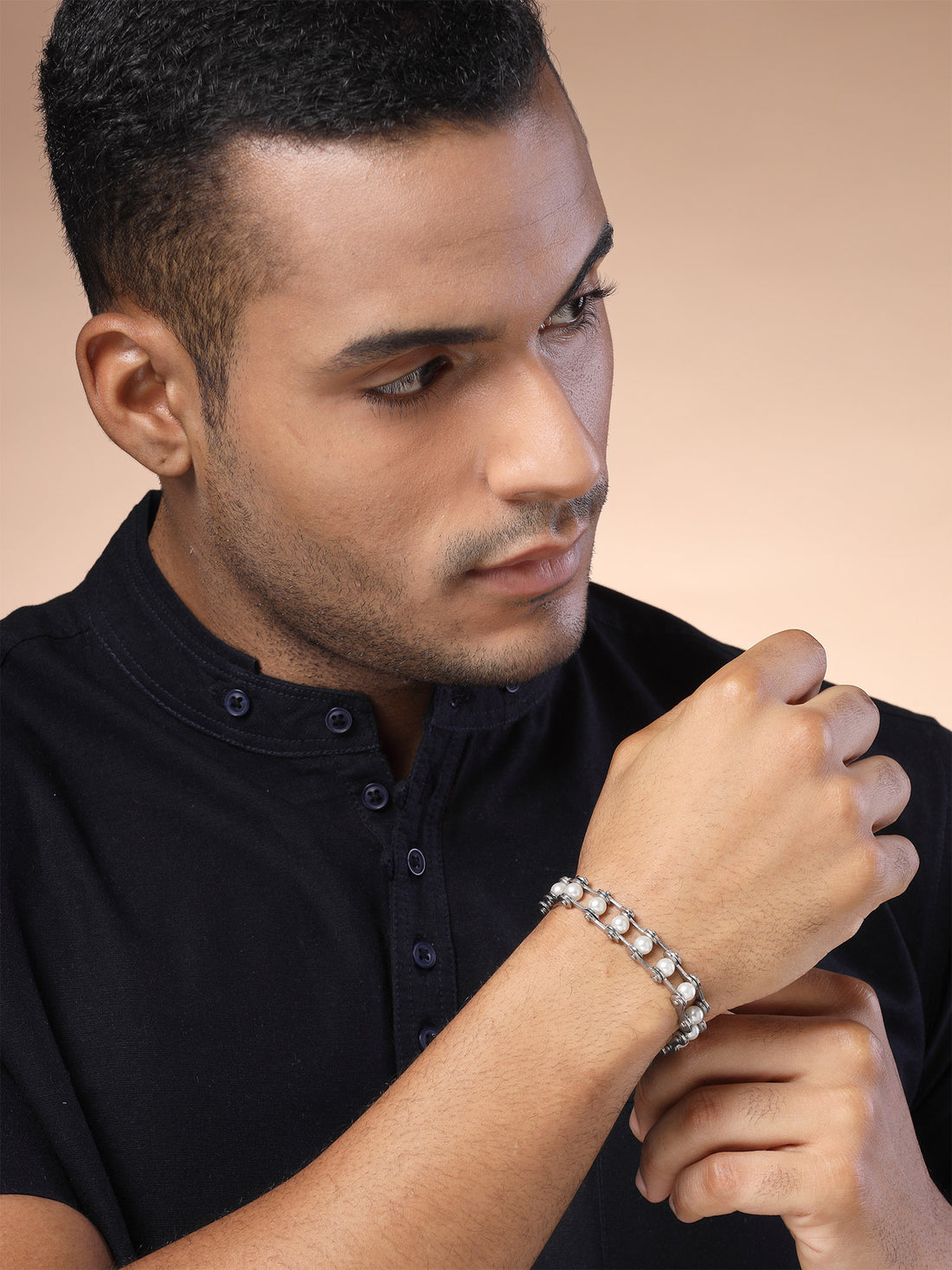 Bohey by KARATCART Silver Plated Link Bracelet for Men