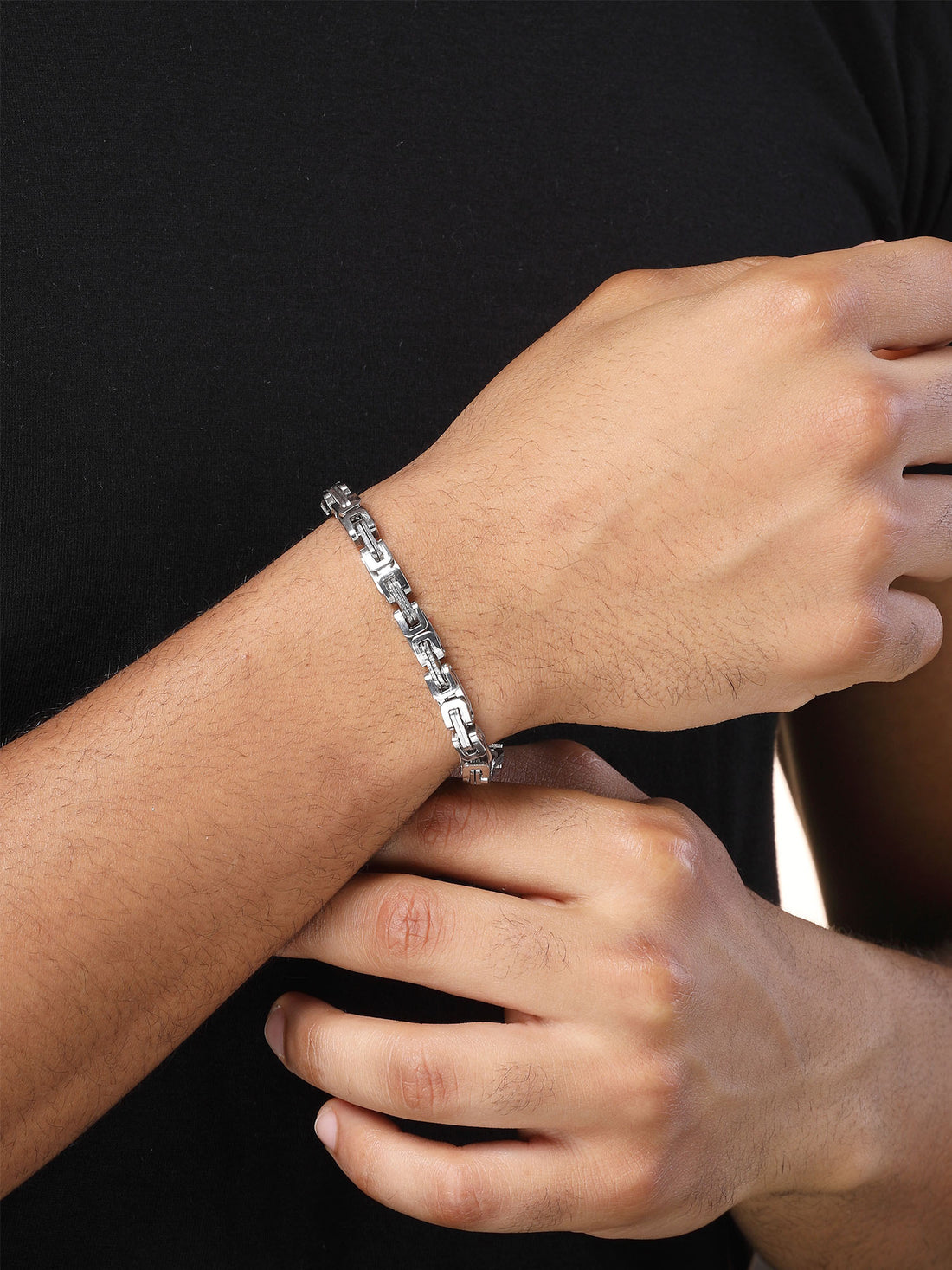 Bohey by KARATCART Men Silver Plated Link Bracelet