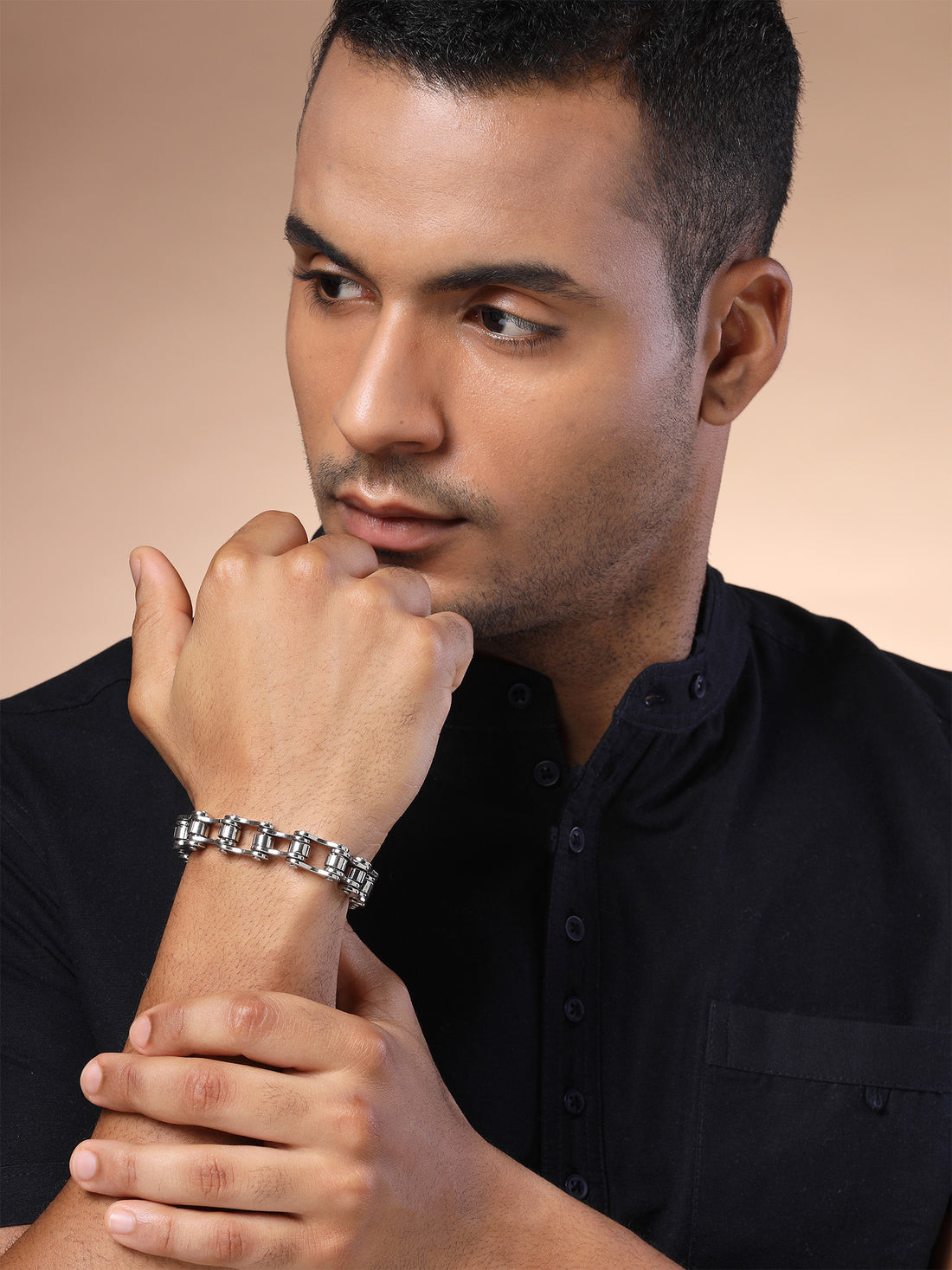 Bohey by KARATCART Silver Tone Chain Chunk Bracelet for Men