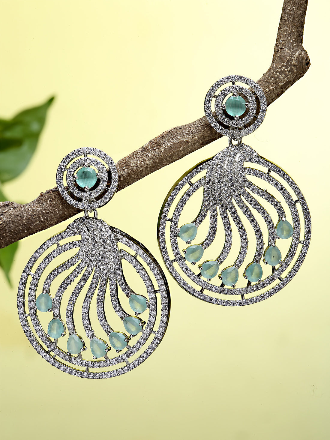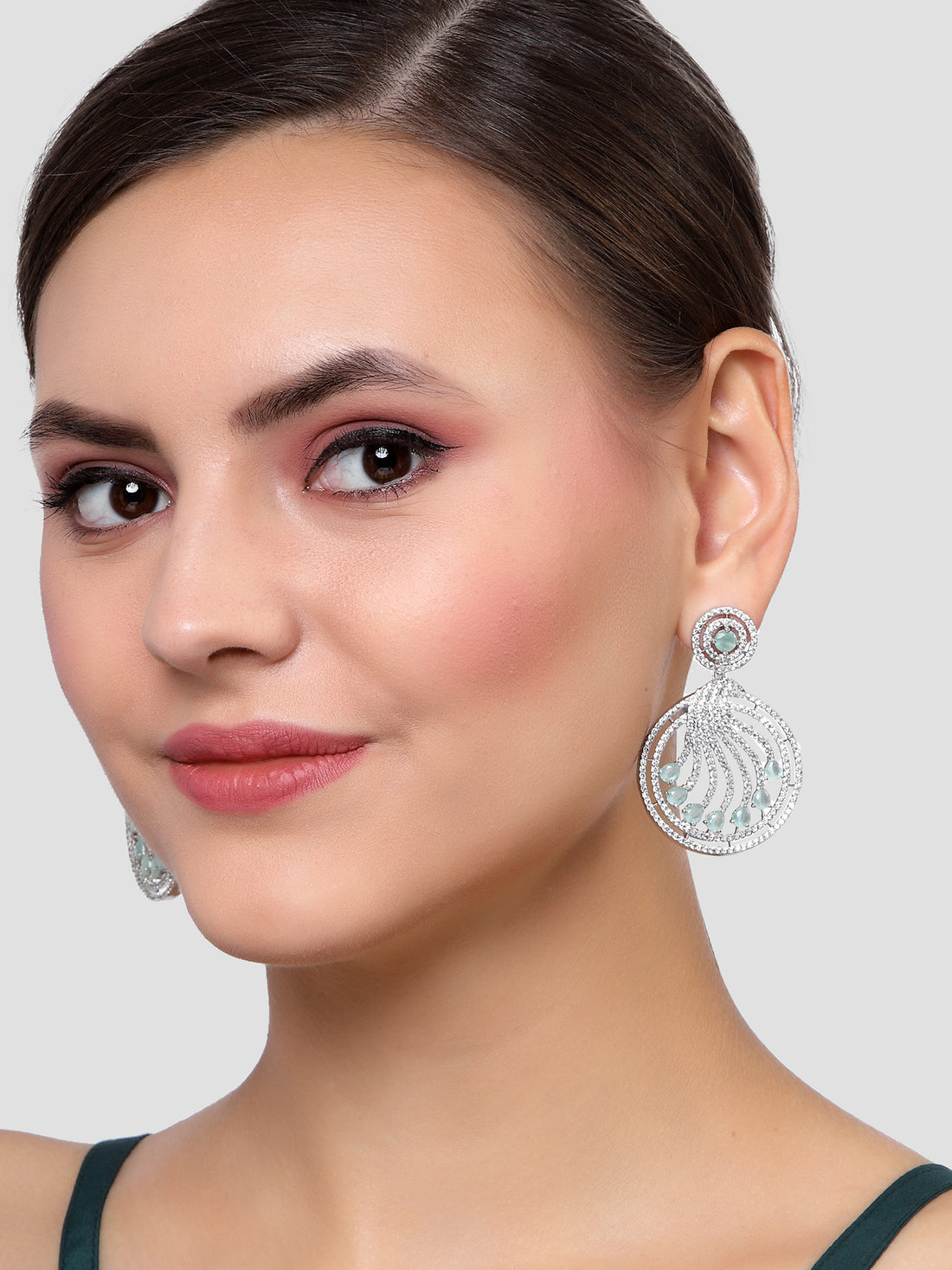 Karatcart Silver Tone Lime Green Cubic Zirconia Studded Dangler Earrings for Women. Our products are...