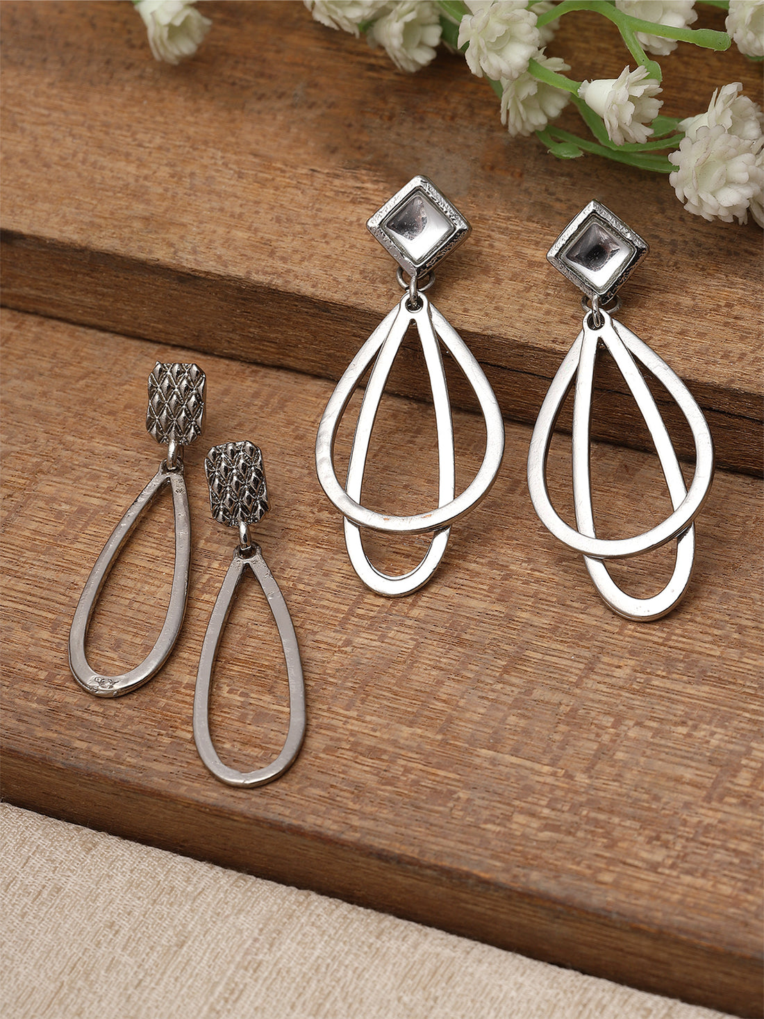 Karatcart Set of 2 Silver Plated Drop Shape Kundan Drop Earrings for Women