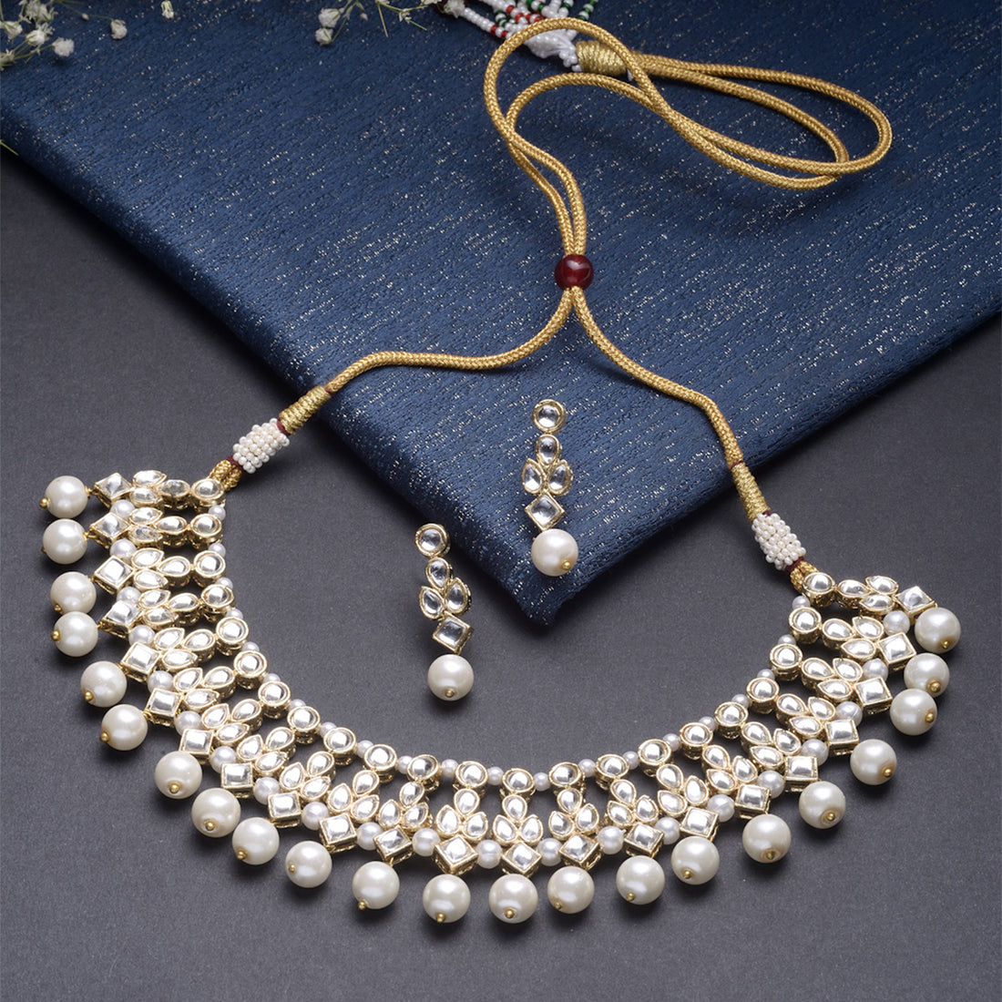 Karatcart Gold Plated Pearl Kundan Choker Necklace Setfor Women
