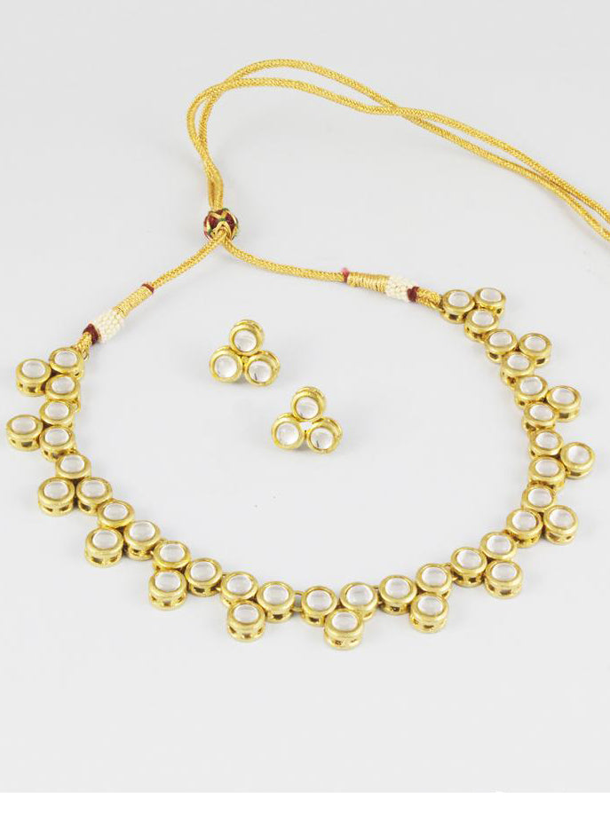 Look Stylish and Trendy with this Kundan Choker Pearl Beads Necklace Set with Stud Earrings...