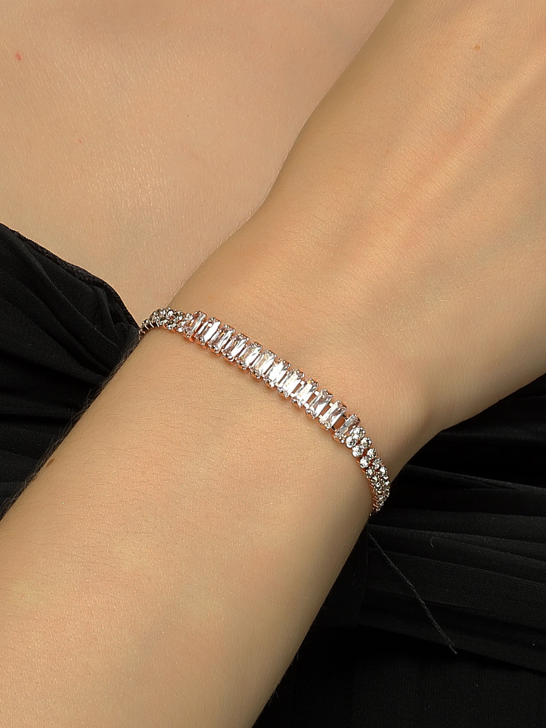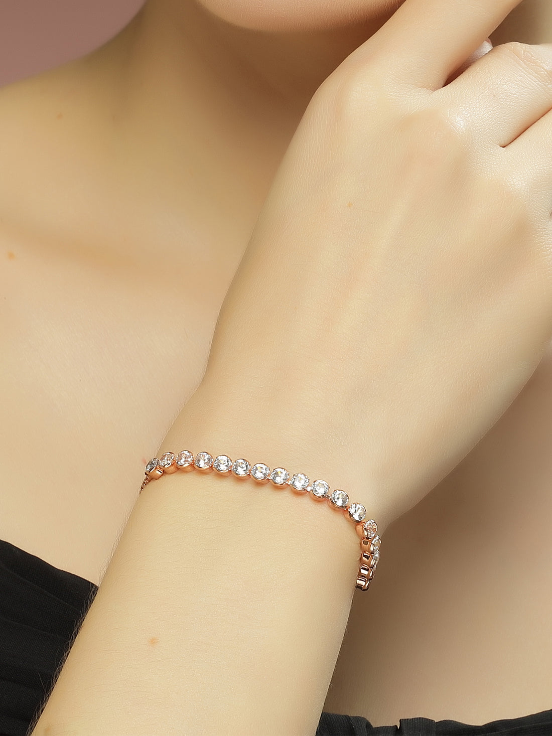 Bohey by KARATCART Rose Gold Plated Adjustable Link Chain Cubic Zirconia Bracelet for Women