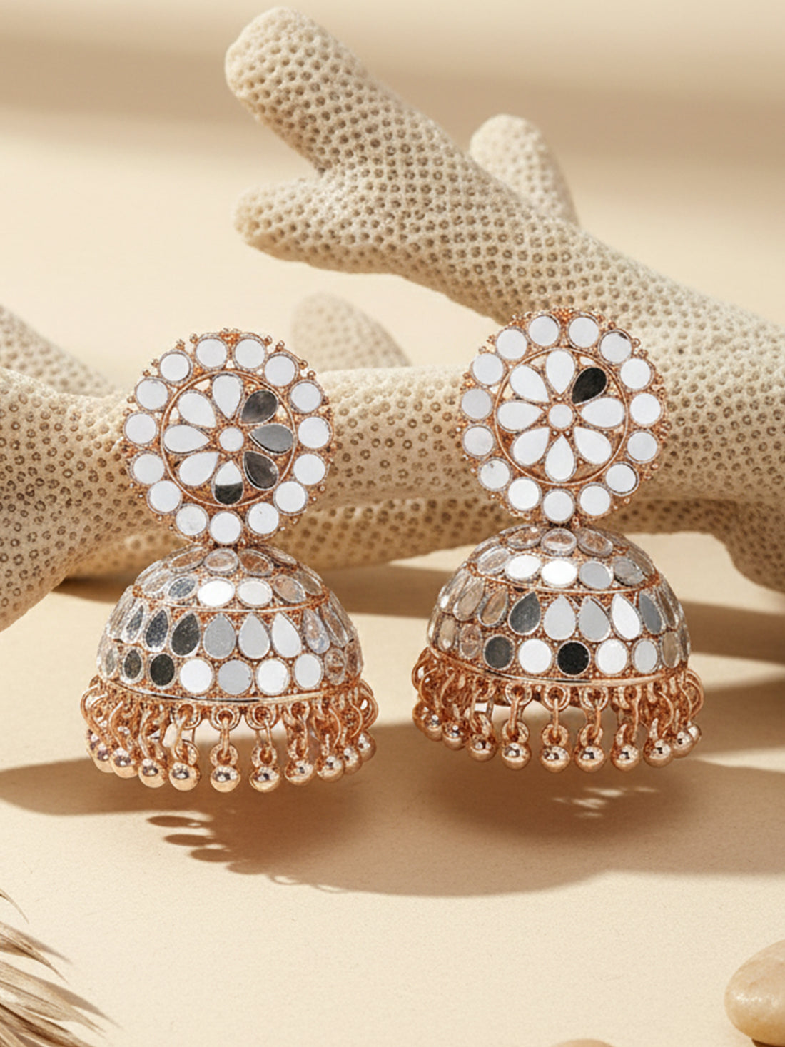 Karatcart Rose Gold Plated Mirror Studded Jhumki Earrings for Women