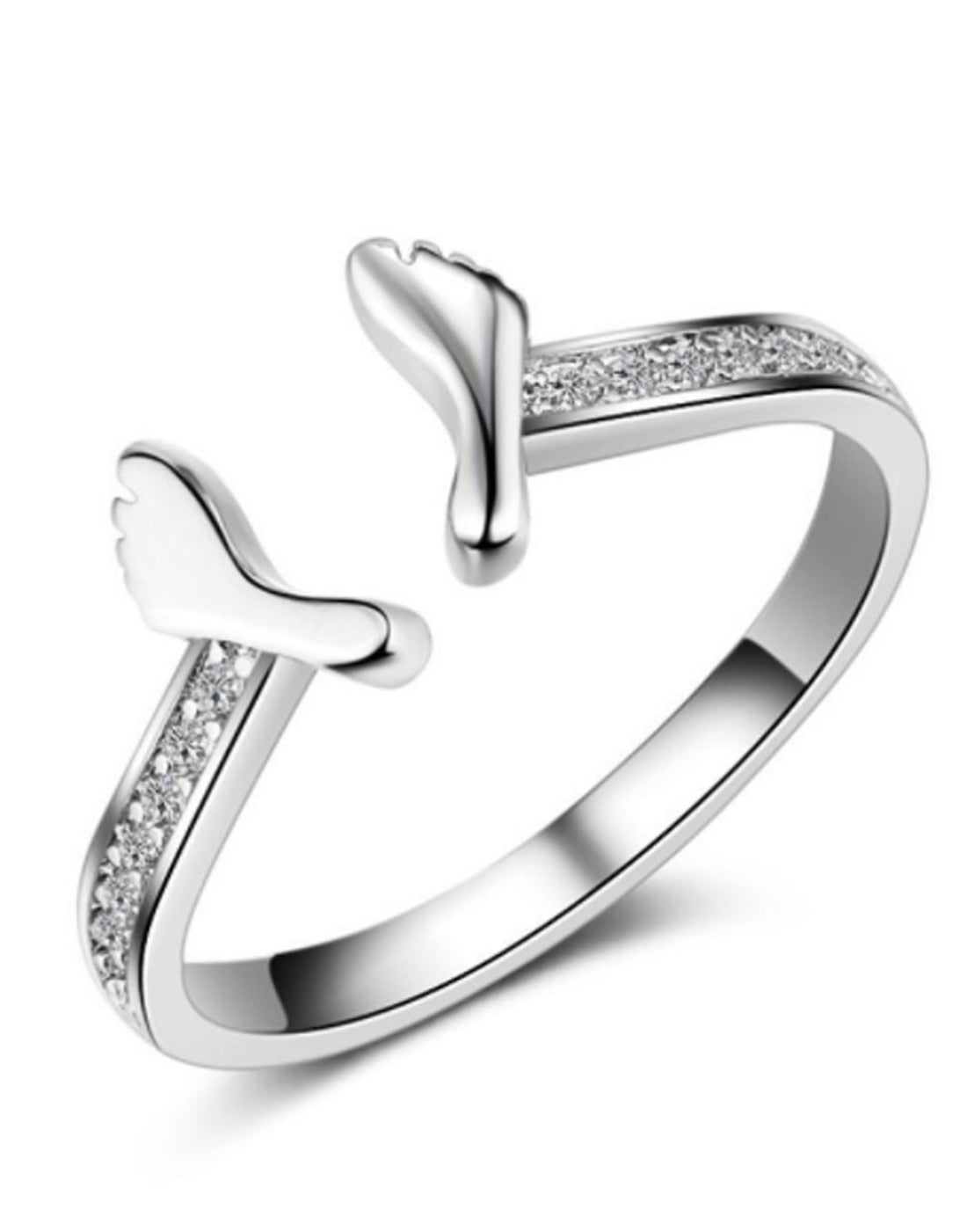 Platinum Plated Elegant Austrian Crystal Foot Print Ring