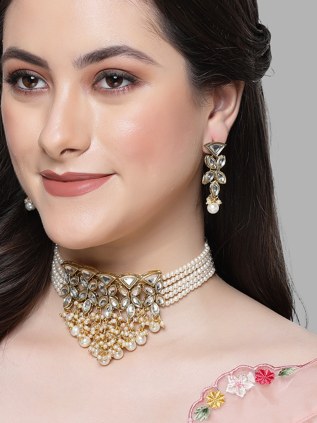 Karatcart Gold Plated Pearl Studded Kundan Choker Necklace Set for Women