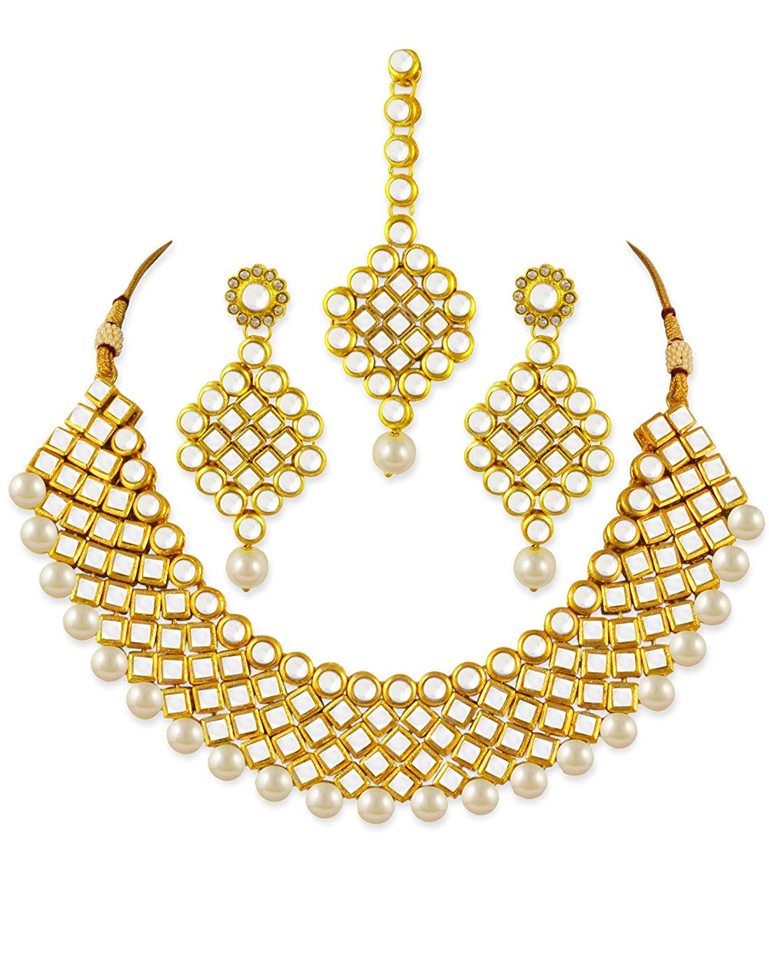 Karatcart Gold-Plated Handcrafted Kundan Stone Studded Choker Necklace with Earrings and Maangtikka. It's Five Layer...