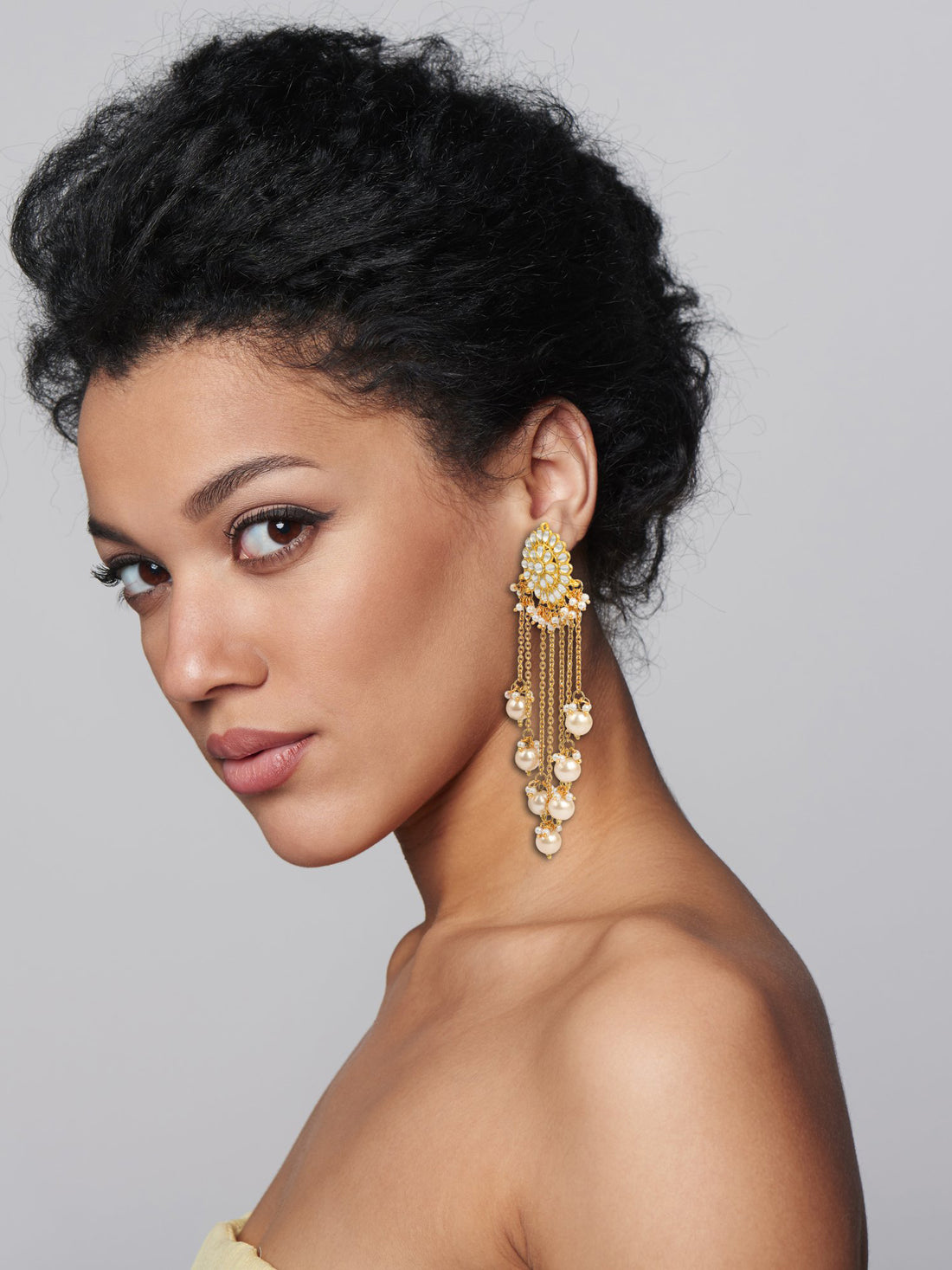 Gold Plated Pearl Drop Kundan Chandbali Earrings