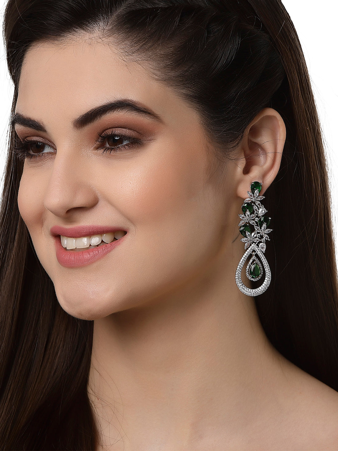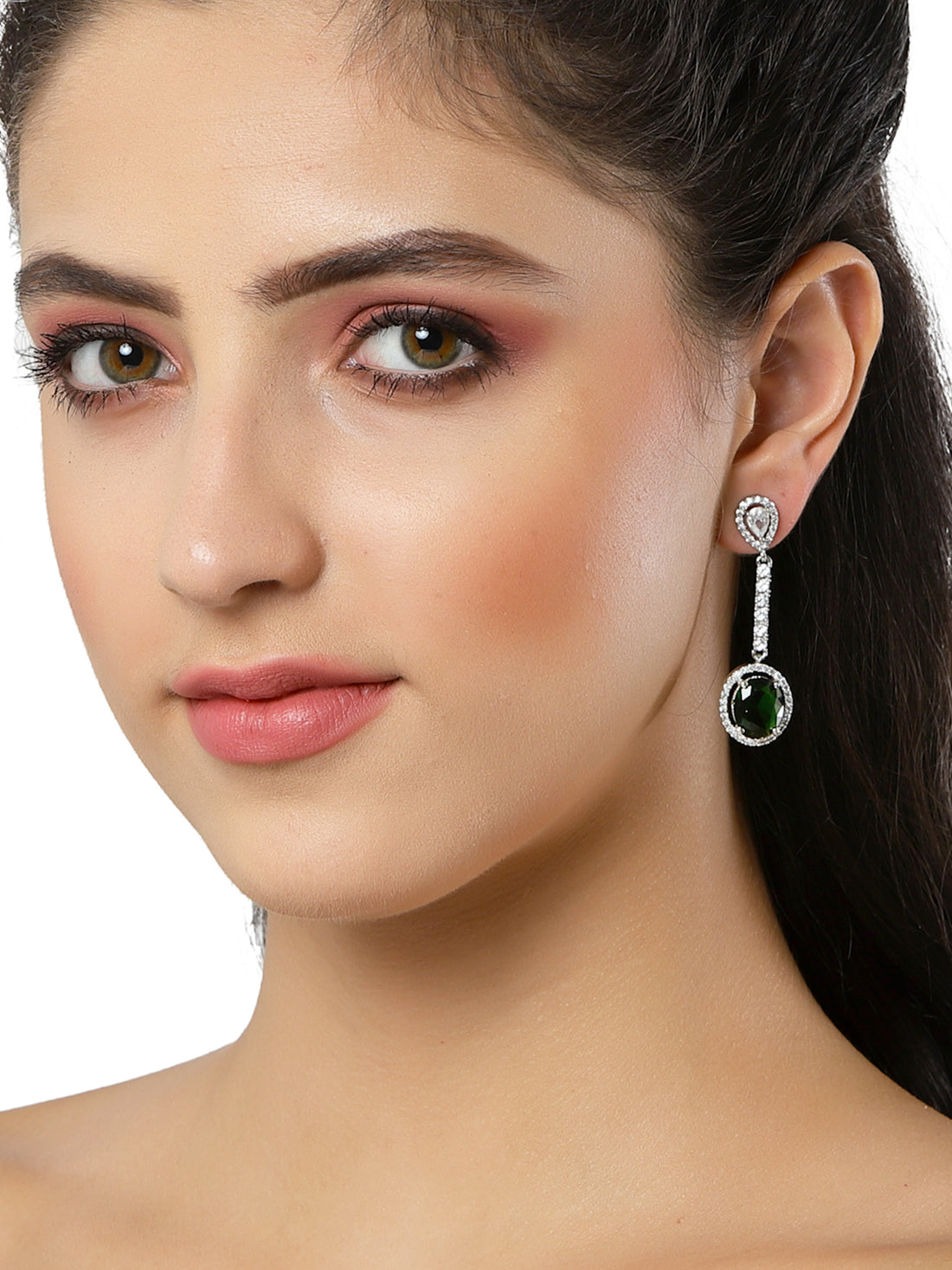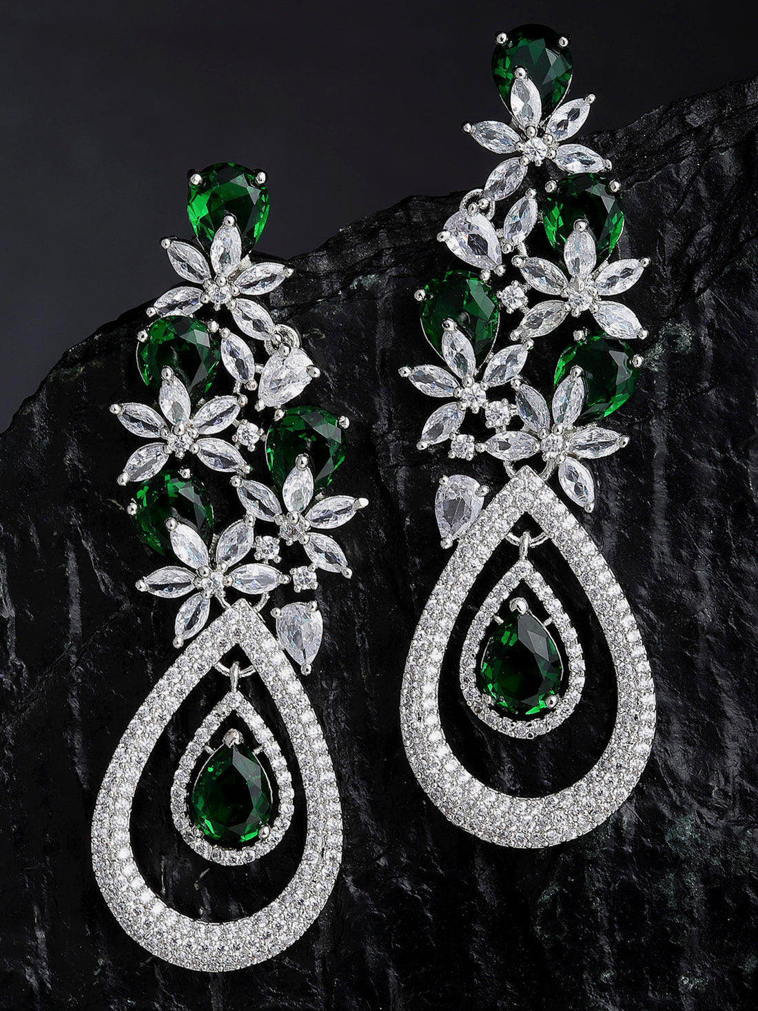 Silver Tone Green American Diamond Drop Earrings for Women