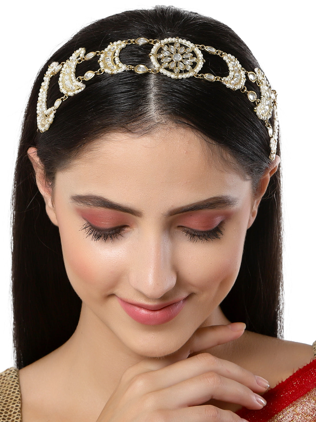 Karatcart Gold Plated Moon Shape Kundan Studded Handcrafted Hairband for Women