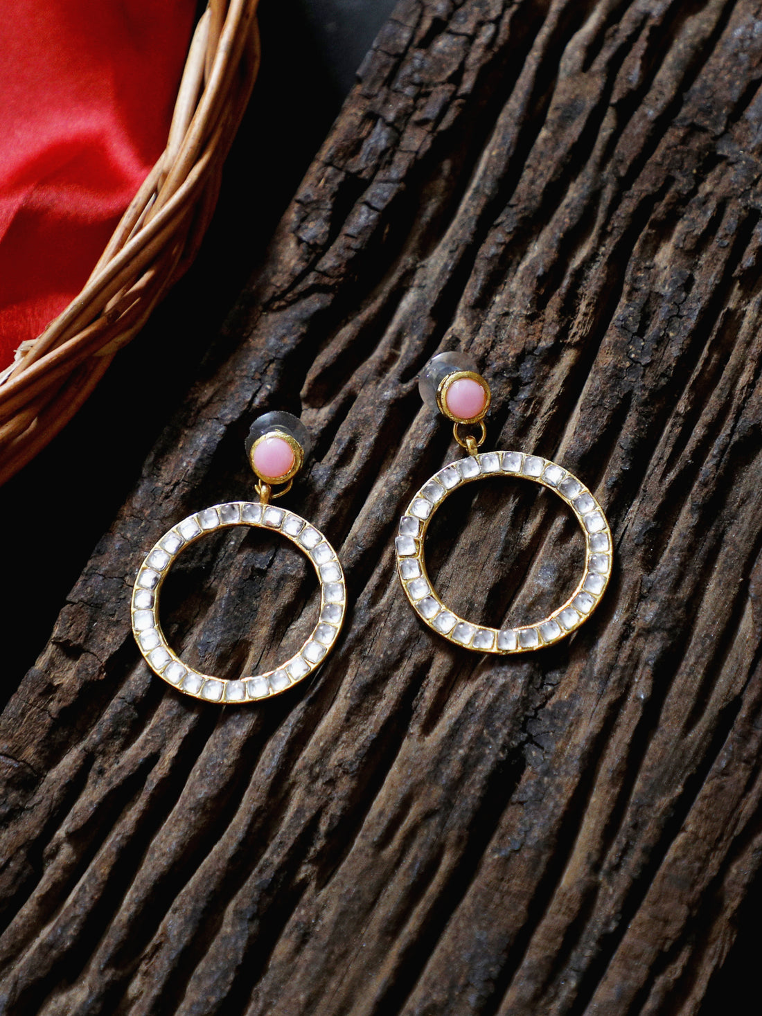 Gold-Tone Kundan Hoop Earrings with Embedded Pink Stone. This set of earrings can be best...