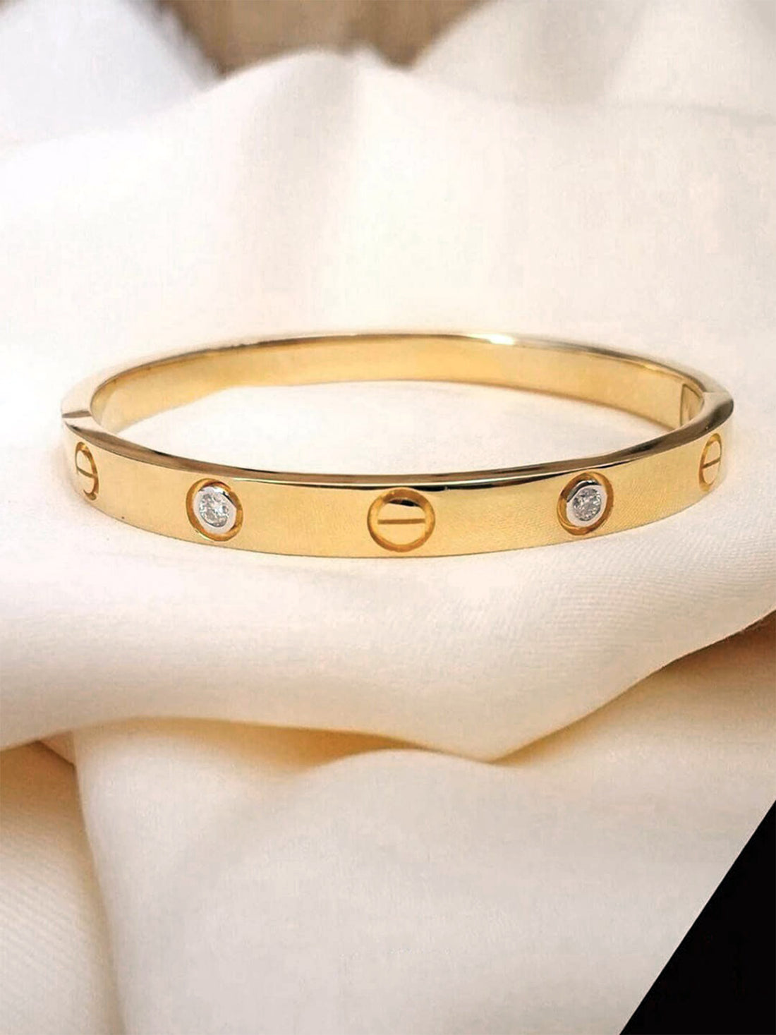 Bohey by KARATCART Gold Plated CZ Stainless Steel Kada Bracelet for Women