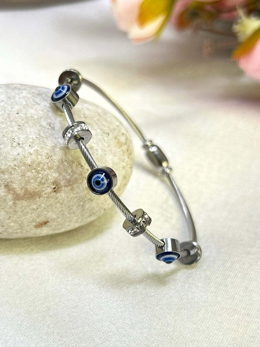 Bohey by KARATCART Silver Plated CZ Evil Eye Bracelet for Women