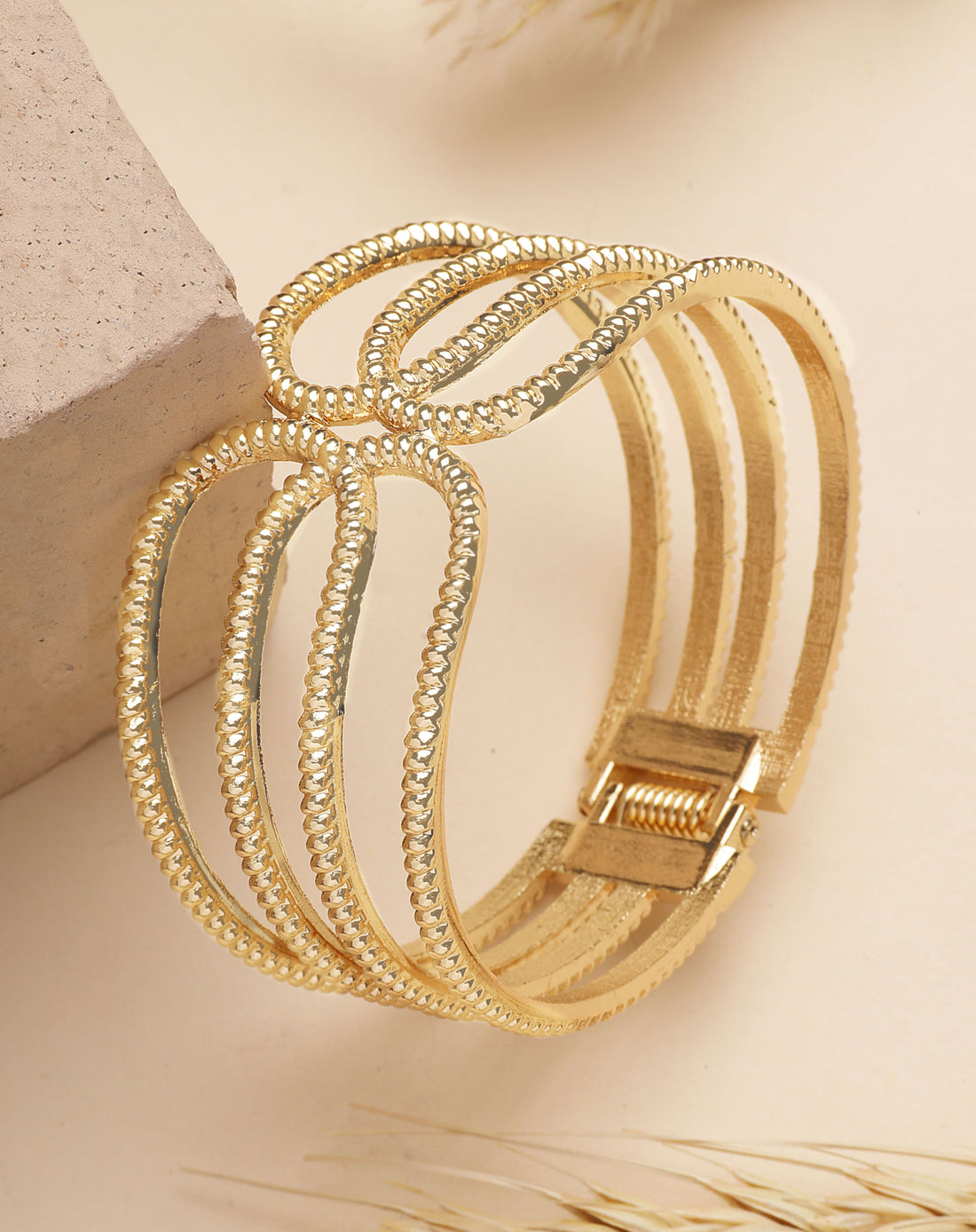 Bohey by KARATCART Gold Plated Hammered Finish Kada Bracelet for Women