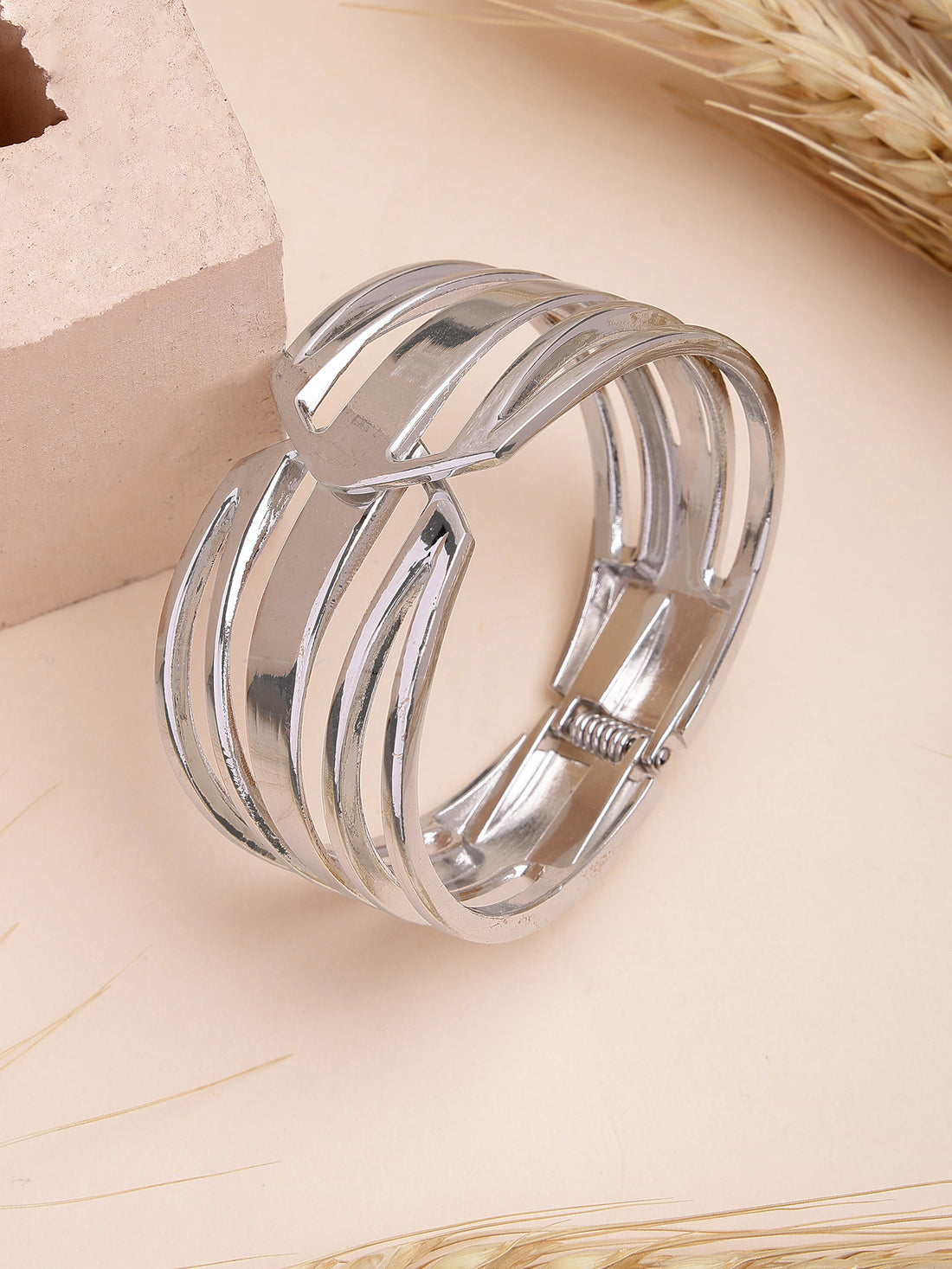Bohey by KARATCART Silver Plated Designer Kada Bracelet for Women