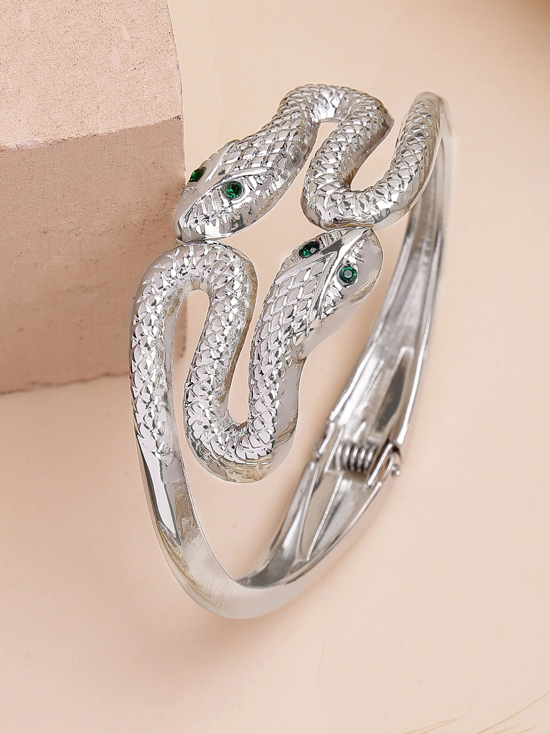 Bohey by KARATCART Silver Plated Snake Design Kada Bracelet for Women